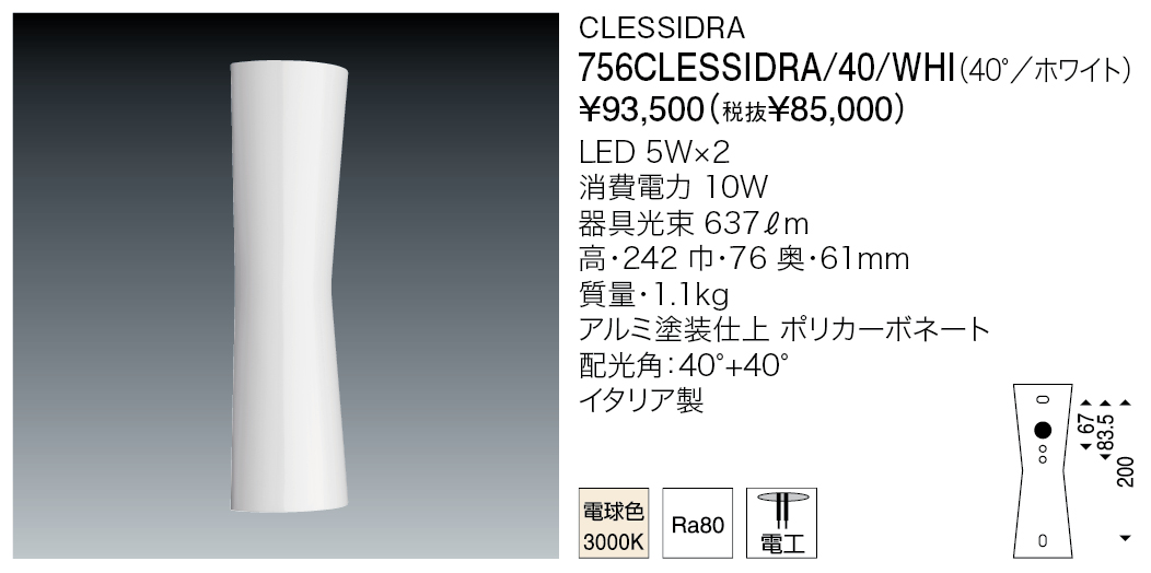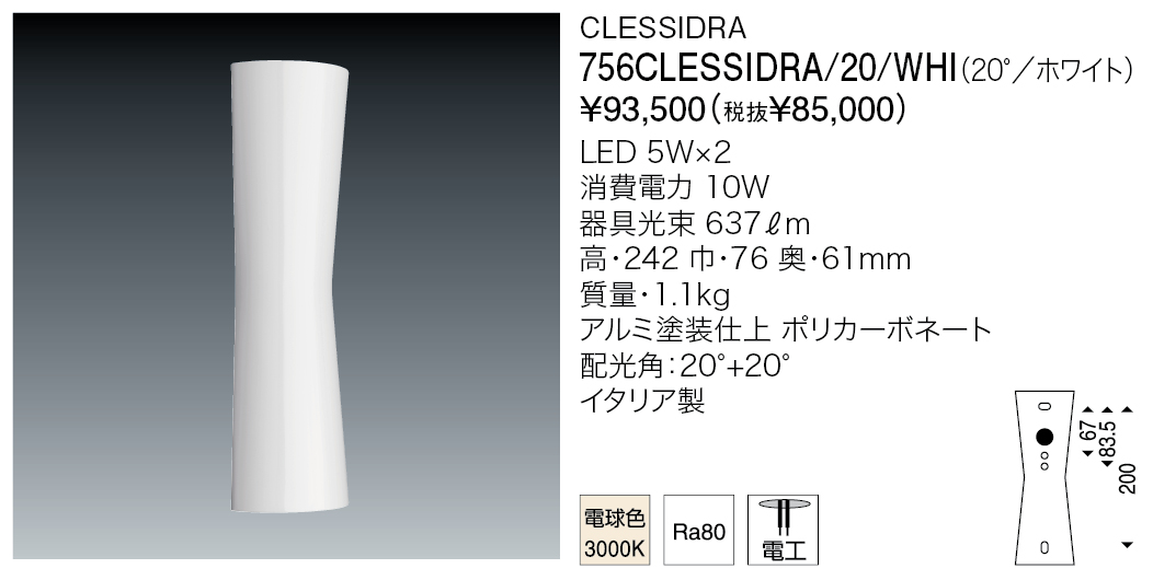 Result 検索結果 ブランド検索 FLOS(フロス/イタリア) 1962年イタリアミラノにて創設。デザイン界の巨匠アキッレ&ピエル・ジャコモカスティリオーニ兄弟をはじめ、フィリップ・スタルク、 ジャスパー・モリソンなどによる名作を、革新的な技術とともに提供し続けています。 検索結果:410件 現在選択中の条件 ブランド: FLOS(フロス/イタリア) ブランド ブランド 選択して下さい Midgard Licht New Works Davide Groppi アークテイク OSRAM YAMAGIWA ASTEP(アステップ/デンマーク) &tradition(アンド・トラディション/デンマーク) Artek(アルテック/フィンランド) Artemide(アルテミデ/イタリア) Baccarat(バカラ/フランス) B.C. SAN MICHELE(BC サン・ミッシェル/イタリア) BEGA(ベガ/ドイツ) CARPYEN(キャルピエン/スペイン) ClassiCon(クラシコン/ドイツ) DCW éditions(DCWエディションズ/フランス) designtree(デザインツリー/ニュージーランド) DOMUS(ドムス/ドイツ) Estiluz(エスティルース/スペイン) FLOS(フロス/イタリア) FOSCARINI(フォスカリーニ/イタリア) frosted FRANK LLOYD WRIGHT®(フランク・ロイド・ライト) FRITZ HANSEN(フリッツ・ハンセン/デンマーク) greenholt(グリーンホルト/デンマーク) Herman Miller(ハーマンミラー/アメリカ) HADELAND(ハーデラン/ノルウェー) hollands licht(ホランズリヒト/オランダ) HALO EDITION(ハロ・エディション/イタリア) INNOLUX(イノルクス/フィンランド) INGO MAURER(インゴ・マウラー/ドイツ) ILTI LUCE(イルティルーチェ/イタリア) ITALAMP(イタランプ/イタリア) JAKOBSSON LAMP(ヤコブソンランプ) Karakter(カラクター/デンマーク) kdln(クンダリーニ/イタリア) LaLampa(ラランパ/ラトビア) LASVIT(ラスビット/チェコ) LEE BROOM(リー・ブルーム/イギリス) LE KLINT(レ・クリント/デンマーク) LLADRO(リヤドロ/スペイン) louis poulsen(ルイスポールセン/デンマーク) LUCEPLAN(ルーチェプラン/イタリア) LZF(ルシフェル/スペイン) MADE BY HAND(メイド・バイ・ハンド/デンマーク) Manooi(マノーイ/ハンガリー) marset(マルセット/スペイン) MICHAELANASTASSIADES(マイケルアナスタシアデス/イギリス) MOLTO LUCE(モルトルーチェ/オーストリア) MUUTO(ムート/デンマーク) NEMO(ネモ/イタリア) Northern(ノーザン/ノルウェー) NYTA(ニュイタ/ドイツ) ORIGINL BTC(オリジナルBTC/イギリス) PANDUL(パンドゥル/デンマーク) PRECIOSA(プレシオーサ/チェコ) PLN GROUP(PLNグループ/ニュージーランド) Resident(レジデント/ニュージーランド) SAMMODE STUDIO(サンモードスタジオ/フランス) TECNO LUMEN(テクノルーメン/ドイツ) TOM DIXON(トム・ディクソン/イギリス) Tom Rossau(トム・ロッサウ/デンマーク) VENINI(ヴェニーニ/イタリア) VERPAN(ヴァーパン/デンマーク) VIBIA(ヴィビア/スペイン) Vitra(ヴィトラ/スイス) WÄSTBERG(ヴァストベリ/スウェーデン) さらに絞り込む 商品カテゴリー 商品カテゴリー 選択して下さい インドア-ペンダント インドア-シーリング インドア-シャンデリア インドア-ブラケット インドア-スタンドライト インドア-システムライト アウトドア-屋外ブラケット アウトドア-屋外フットライト アウトドア-屋外ボラード 商品タイプ ベース デコラティブ 和風 吸音 システムライト タスクライト テーブルライト フロアライト ベースライト アジャスタブル ウォールウォッシャー アクセサリー スポットライト ペンダントライト アームライト ミュージアム メディカル 吊り下げ 直付け 防湿/防雨防湿 オプション/パーツ類 光源タイプ LED一体型 LED電球 その他 白熱球 色温度 電球色2200K 電球色2350K 電球色3500K 電球色2700K 電球色3000K 温白色3500K 白色4000K 昼白色5000K 昼光色6500K 調色 カラー その他 器具光束 500ℓm以下 501~1500ℓm 1501~3000ℓm 3001ℓm以上 演色性 Ra 90 以上 配光角度 〜7° 8°〜15° 16°〜24° 25°〜35° 36°〜 可変 リモコン・スイッチ・センサ 無線ユニット 調光・調色スイッチ付 スイッチ付 調光スイッチ付 リモコン付 タブレット別 取付方法 取付簡易型 引掛シーリング ライティングダクト 工事 フランジ・直付 ジャックイン 材質 金属 樹脂 木 布 ガラス 磁器 和紙 その他 照明データ 0 3D CADデータ IESデータ REVITデータ 配光データ 選択項目をすべて解除 FLOS(フロス/イタリア) 検索結果:410件 投稿のページ送り 1 2 3 … 41 Next 投稿のページ送り 1 2 3 … 41 表示順 : 型番順 価格が安い順 価格が高い ページ内すべてを選択 選択を解除 チェックした項目をダウンロード 全て選択 小組画像 全て選択 仕様図 全て選択 取扱説明書 全て選択 姿図1 全て選択 姿図2 全て選択 配光データ 全て選択 IESデータ 全て選択 商品画像 全て選択 3D CAD 全て選択 REVITデータ 全て選択 CLESSIDRA(カタログ非掲載) 756CLESSIDRA/20/WHI オープン価格 色温度 3000K 演色性 80 この製品データを全て選択 小組画像 仕様図 取扱説明書 姿図1 姿図2 配光データ IESデータ 商品画像 3D CAD REVITデータ MINI KELVIN LED(カタログ非掲載) 756MINIKELVIN/LED オープン価格 色温度 3000K 演色性 Ra 85 この製品データを全て選択 小組画像 仕様図 取扱説明書 姿図1 姿図2 配光データ IESデータ 商品画像 3D CAD REVITデータ LAST ORDER FLUTED(カタログ非掲載) 756LASTORDER/FL/COP オープン