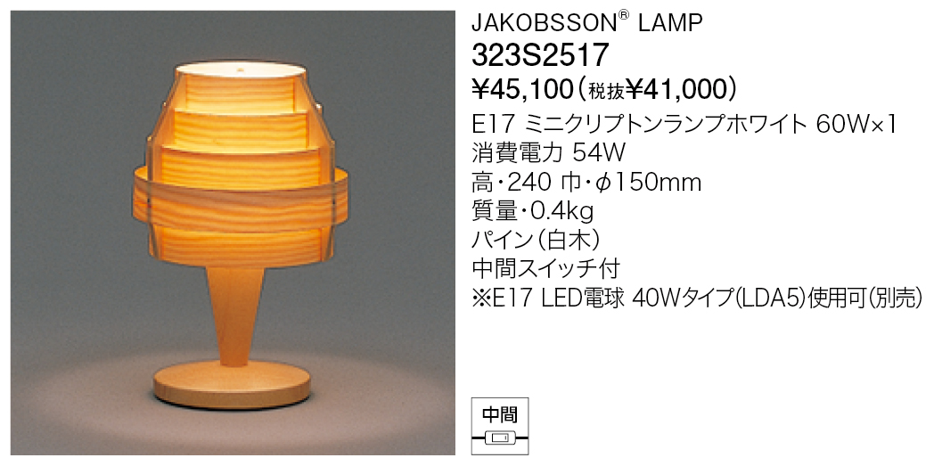 Result 検索結果 ブランド検索 JAKOBSSON LAMP(ヤコブソンランプ) スウェーデンのデザイナー、ハンス-アウネ・ヤコブソンが1960-70年代にエリセットシリーズとして発表した作品群で、薄く削いだヨーロッパのパイン材の年輪と、まぶしさを抑えるセードの重なりの美しさで親しまれてきました。YAMAGIWAは現代にこのシリーズを継承しています。 検索結果:34件 現在選択中の条件 ブランド: JAKOBSSON LAMP(ヤコブソンランプ) ブランド ブランド 選択して下さい Midgard Licht New Works Davide Groppi アークテイク OSRAM YAMAGIWA ASTEP(アステップ/デンマーク) &tradition(アンド・トラディション/デンマーク) Artek(アルテック/フィンランド) Artemide(アルテミデ/イタリア) Baccarat(バカラ/フランス) B.C. SAN MICHELE(BC サン・ミッシェル/イタリア) BEGA(ベガ/ドイツ) CARPYEN(キャルピエン/スペイン) ClassiCon(クラシコン/ドイツ) DCW éditions(DCWエディションズ/フランス) designtree(デザインツリー/ニュージーランド) DOMUS(ドムス/ドイツ) Estiluz(エスティルース/スペイン) FLOS(フロス/イタリア) FOSCARINI(フォスカリーニ/イタリア) frosted FRANK LLOYD WRIGHT®(フランク・ロイド・ライト) FRITZ HANSEN(フリッツ・ハンセン/デンマーク) greenholt(グリーンホルト/デンマーク) Herman Miller(ハーマンミラー/アメリカ) HADELAND(ハーデラン/ノルウェー) hollands licht(ホランズリヒト/オランダ) HALO EDITION(ハロ・エディション/イタリア) INNOLUX(イノルクス/フィンランド) INGO MAURER(インゴ・マウラー/ドイツ) ILTI LUCE(イルティルーチェ/イタリア) ITALAMP(イタランプ/イタリア) JAKOBSSON LAMP(ヤコブソンランプ) Karakter(カラクター/デンマーク) kdln(クンダリーニ/イタリア) LaLampa(ラランパ/ラトビア) LASVIT(ラスビット/チェコ) LEE BROOM(リー・ブルーム/イギリス) LE KLINT(レ・クリント/デンマーク) LLADRO(リヤドロ/スペイン) louis poulsen(ルイスポールセン/デンマーク) LUCEPLAN(ルーチェプラン/イタリア) LZF(ルシフェル/スペイン) MADE BY HAND(メイド・バイ・ハンド/デンマーク) Manooi(マノーイ/ハンガリー) marset(マルセット/スペイン) MICHAELANASTASSIADES(マイケルアナスタシアデス/イギリス) MOLTO LUCE(モルトルーチェ/オーストリア) MUUTO(ムート/デンマーク) NEMO(ネモ/イタリア) Northern(ノーザン/ノルウェー) NYTA(ニュイタ/ドイツ) ORIGINL BTC(オリジナルBTC/イギリス) PANDUL(パンドゥル/デンマーク) PRECIOSA(プレシオーサ/チェコ) PLN GROUP(PLNグループ/ニュージーランド) Resident(レジデント/ニュージーランド) SAMMODE STUDIO(サンモードスタジオ/フランス) TECNO LUMEN(テクノルーメン/ドイツ) TOM DIXON(トム・ディクソン/イギリス) Tom Rossau(トム・ロッサウ/デンマーク) VENINI(ヴェニーニ/イタリア) VERPAN(ヴァーパン/デンマーク) VIBIA(ヴィビア/スペイン) Vitra(ヴィトラ/スイス) WÄSTBERG(ヴァストベリ/スウェーデン) さらに絞り込む 商品カテゴリー 商品カテゴリー 選択して下さい インドア-ペンダント インドア-シーリング インドア-シャンデリア インドア-ブラケット インドア-スタンドライト 商品タイプ ベース デコラティブ 和風 吸音 システムライト タスクライト テーブルライト フロアライト ベースライト アジャスタブル ウォールウォッシャー アクセサリー スポットライト ペンダントライト アームライト ミュージアム メディカル 吊り下げ 直付け 防湿/防雨防湿 オプション/パーツ類 畳数 10~12畳 4.5畳 4.5~6畳 6~8畳 8~10畳 ~12畳 ~4.5畳 ~6畳 ~8畳 ~10畳 光源タイプ LED一体型 LED電球 その他 白熱球 色温度 電球色2200K 電球色2350K 電球色3500K 電球色2700K 電球色3000K 温白色3500K 白色4000K 昼白色5000K 昼光色6500K 調色 カラー その他 器具光束 500ℓm以下 501~1500ℓm 1501~3000ℓm 3001ℓm以上 リモコン・スイッチ・センサ 無線ユニット 調光・調色スイッチ付 スイッチ付 調光スイッチ付 リモコン付 タブレット別 取付方法 取付簡易型 引掛シーリング ライティングダクト 工事 フランジ・直付 ジャックイン 材質 金属 樹脂 木 布 ガラス 磁器 和紙 その他 取付条件 傾斜天井可 照明データ 0 3D CADデータ IESデータ REVITデータ 配光データ 選択項目をすべて解除 JAKOBSSON LAMP(ヤコブソンランプ) 検索結果:34件 投稿のページ送り 1 2 3 4 Next 投稿のページ送り 1 2 3 4 表示順 : 型番順 価格が安い順 価格が高い ページ内すべてを選択 選択を解除 チェックした項目をダウンロード 全て選択 小組画像 全て選択 仕様図 全て選択 取扱説明書 全て選択 姿図1 全て選択 姿図2 全て選択 配光データ 全て選択 IESデータ 全て選択 商品画像 全て選択 3D CAD 全て選択 REVITデータ 全て選択 JAKOBSSON® LAMP 323F-216 税込 ¥37,400 (税抜 ¥34,000) この製品データを全て選択 小組画像 仕様図 取扱説明書 姿図1 姿図2 配光データ IESデータ 商品画像 3D CAD REVITデータ JAKOBSSON® LAMP 323F-216H 税込 ¥39,600 (税抜 ¥36,000) この製品データを全て選択 小組画像 仕様図 取扱説明書 姿図1 姿図2 配光データ IESデータ 商品画像 3D CAD REVITデータ JAKOBSSON® LAMP 323B2569 税込 ¥40,700 (税抜 ¥37,000) この製品データを全て選択 小組画像 仕様図 取扱説明書 姿図1 姿図2 配光データ IESデータ 商品画像 3D 