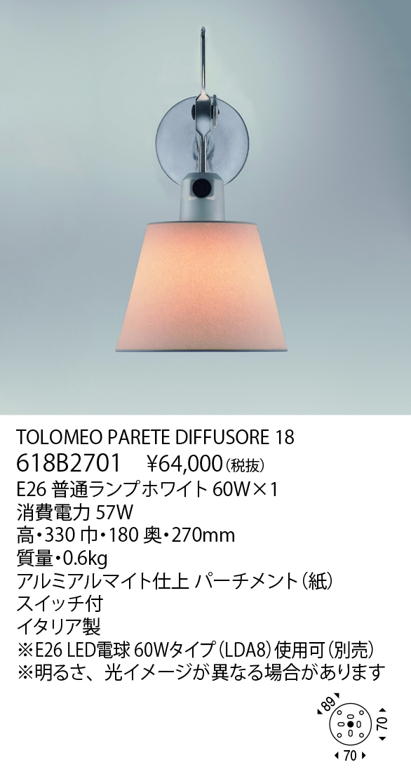 Result 検索結果 ブランド検索 Artemide(アルテミデ/イタリア) 1959年設立。“The Human Light”の哲学で知られ、今日ではデザイン、イノベーションと同義語なイタリアブランドです。リチャード・サッパーの「ティチオ」、ミケーレ・デ・ルッキの「トロメオ」が世界中で愛用されています。 検索結果:3件 現在選択中の条件 ブランド: Artemide(アルテミデ/イタリア) 材質: その他 ブランド ブランド 選択して下さい New Works YAMAGIWA Artemide(アルテミデ/イタリア) CARPYEN(キャルピエン/スペイン) FLOS(フロス/イタリア) FOSCARINI(フォスカリーニ/イタリア) FRANK LLOYD WRIGHT®(フランク・ロイド・ライト) INGO MAURER(インゴ・マウラー/ドイツ) LEE BROOM(リー・ブルーム/イギリス) LE KLINT(レ・クリント/デンマーク) MUUTO(ムート/デンマーク) TOM DIXON(トム・ディクソン/イギリス) Tom Rossau(トム・ロッサウ/デンマーク) VERPAN(ヴァーパン/デンマーク) VIBIA(ヴィビア/スペイン) WÄSTBERG(ヴァストベリ/スウェーデン) さらに絞り込む 商品カテゴリー 商品カテゴリー 選択して下さい インドア-ブラケット インドア-スタンドライト 商品タイプ ベース デコラティブ 和風 吸音 システムライト タスクライト テーブルライト フロアライト ベースライト アジャスタブル ウォールウォッシャー アクセサリー スポットライト ペンダントライト アームライト ミュージアム メディカル 吊り下げ 直付け 防湿/防雨防湿 オプション/パーツ類 光源タイプ LED一体型 LED電球 その他 白熱球 色温度 電球色2200K 電球色2350K 電球色3500K 電球色2700K 電球色3000K 温白色3500K 白色4000K 昼白色5000K 昼光色6500K 調色 カラー その他 リモコン・スイッチ・センサ 無線ユニット 調光・調色スイッチ付 スイッチ付 調光スイッチ付 リモコン付 タブレット別 取付方法 取付簡易型 引掛シーリング ライティングダクト 工事 フランジ・直付 ジャックイン 材質 選択中 金属 樹脂 木 布 ガラス 磁器 和紙 その他 選択項目をすべて解除 Artemide(アルテミデ/イタリア) 検索結果:3件 表示順 : 型番順 価格が安い順 価格が高い ページ内すべてを選択 選択を解除 チェックした項目をダウンロード 全て選択 小組画像 全て選択 仕様図 全て選択 取扱説明書 全て選択 姿図1 全て選択 姿図2 全て選択 配光データ 全て選択 IESデータ 全て選択 商品画像 全て選択 3D CAD 全て選択 REVITデータ 全て選択 TOLOMEO DIFFUSORE 24 WALL 618B2700S 税込 ¥104,500 (税抜 ¥95,000) この製品データを全て選択 小組画像 仕様図 取扱説明書 姿図1 姿図2 配光データ IESデータ 商品画像 3D CAD REVITデータ TOLOMEO PARETE DIFFUSORE 18(カタログ非掲載) 618B2701 オープン価格 色温度 2700K この製品データを全て選択 小組画像 仕様図 取扱説明書 姿図1 姿図2 配光データ IESデータ 商品画像 3D CAD REVITデータ TOLOMEO MEGA FLOOR 618S2936 税込 ¥297,000 (税抜 ¥270,000) この製品データを全て選択 小組画像 仕様図 取扱説明書 姿図1 姿図2 配光データ IESデータ 商品画像 3D CAD REVITデータ ページ内すべてを選択 選択を解除 チェックした項目をダウンロード Index