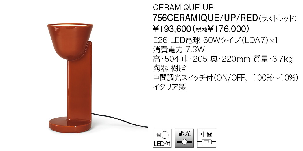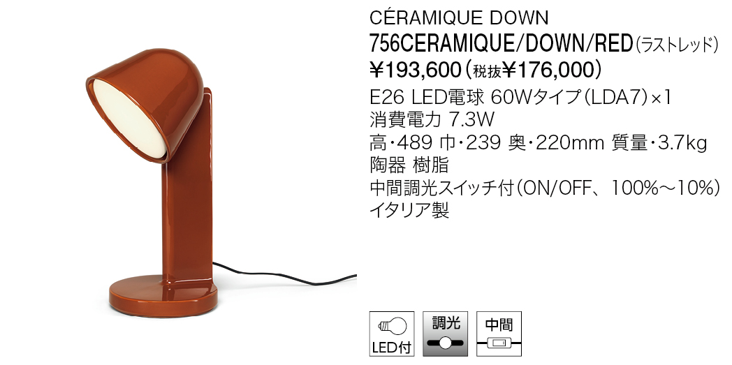 Result 検索結果 ブランド検索 FLOS(フロス/イタリア) 1962年イタリアミラノにて創設。デザイン界の巨匠アキッレ&ピエル・ジャコモカスティリオーニ兄弟をはじめ、フィリップ・スタルク、 ジャスパー・モリソンなどによる名作を、革新的な技術とともに提供し続けています。 検索結果:9件 現在選択中の条件 ブランド: FLOS(フロス/イタリア) 材質: 磁器 ブランド ブランド 選択して下さい YAMAGIWA FLOS(フロス/イタリア) LLADRO(リヤドロ/スペイン) さらに絞り込む 商品カテゴリー 商品カテゴリー 選択して下さい インドア-スタンドライト 商品タイプ ベース デコラティブ 和風 吸音 システムライト タスクライト テーブルライト フロアライト ベースライト アジャスタブル ウォールウォッシャー アクセサリー スポットライト ペンダントライト アームライト ミュージアム メディカル 吊り下げ 直付け 防湿/防雨防湿 オプション/パーツ類 光源タイプ LED一体型 LED電球 その他 白熱球 リモコン・スイッチ・センサ 無線ユニット 調光・調色スイッチ付 スイッチ付 調光スイッチ付 リモコン付 タブレット別 材質 選択中 金属 樹脂 木 布 ガラス 磁器 和紙 その他 選択項目をすべて解除 FLOS(フロス/イタリア) 検索結果:9件 表示順 : 型番順 価格が安い順 価格が高い ページ内すべてを選択 選択を解除 チェックした項目をダウンロード 全て選択 小組画像 全て選択 仕様図 全て選択 取扱説明書 全て選択 姿図1 全て選択 姿図2 全て選択 配光データ 全て選択 IESデータ 全て選択 商品画像 全て選択 3D CAD 全て選択 REVITデータ 全て選択 CÉRAMIQUE DOWN 756CERAMIQUE/DOWN/BLU 税込 ¥193,600 (税抜 ¥176,000) この製品データを全て選択 小組画像 仕様図 取扱説明書 姿図1 姿図2 配光データ IESデータ 商品画像 3D CAD REVITデータ CÉRAMIQUE DOWN 756CERAMIQUE/DOWN/GRN 税込 ¥193,600 (税抜 ¥176,000) この製品データを全て選択 小組画像 仕様図 取扱説明書 姿図1 姿図2 配光データ IESデータ 商品画像 3D CAD REVITデータ CÉRAMIQUE DOWN 756CERAMIQUE/DOWN/RED 税込 ¥193,600 (税抜 ¥176,000) この製品データを全て選択 小組画像 仕様図 取扱説明書 姿図1 姿図2 配光データ IESデータ 商品画像 3D CAD REVITデータ CÉRAMIQUE SIDE 756CERAMIQUE/SIDE/BLU 税込 ¥193,600 (税抜 ¥176,000) この製品データを全て選択 小組画像 仕様図 取扱説明書 姿図1 姿図2 配光データ IESデータ 商品画像 3D CAD REVITデータ CÉRAMIQUE SIDE 756CERAMIQUE/SIDE/GRN 税込 ¥193,600 (税抜 ¥176,000) この製品データを全て選択 小組画像 仕様図 取扱説明書 姿図1 姿図2 配光データ IESデータ 商品画像 3D CAD REVITデータ CÉRAMIQUE SIDE 756CERAMIQUE/SIDE/RED 税込 ¥193,600 (税抜 ¥176,000) この製品データを全て選択 小組画像 仕様図 取扱説明書 姿図1 姿図2 配光データ IESデータ 商品画像 3D CAD REVITデータ CÉRAMIQUE UP 756CERAMIQUE/UP/BLU 税込 ¥193,600 (税抜 ¥176,000) この製品データを全て選択 小組画像 仕様図 取扱説明書 姿図1 姿図2 配光データ IESデータ 商品画像 3D CAD REVITデータ CÉRAMIQUE UP 756CERAMIQUE/UP/GRN 税込 ¥193,600 (税抜 ¥176,000) この製品データを全て選択 小組画像 仕様図 取扱説明書 姿図1 姿図2 配光データ IESデータ 商品画像 3D CAD REVITデータ CÉRAMIQUE UP 756CERAMIQUE/UP/RED 税込 ¥193,600 (税抜 ¥176,000) この製品データを全て選択 小組画像 仕様図 取扱説明書 姿図1 姿図2 配光データ IESデータ 商品画像 3D CAD REVITデータ ページ内すべてを選択 選択を解除 チェックした項目をダウンロード Index