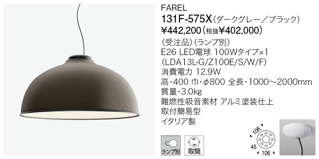 Result 検索結果 ブランド検索 LUCEPLAN(ルーチェプラン/イタリア) 1978年創業、イタリア照明界に新風を吹き込んだ革新的なブランドです。新素材の開発、軽快なフォルムや明るい色使いなど遊び心に富んだ作品は、照明器具が生活を楽しむ趣味と感性の領域に入ったことの好例となりました。 検索結果:36件 現在選択中の条件 ブランド: LUCEPLAN(ルーチェプラン/イタリア) 材質: 樹脂 ブランド ブランド 選択して下さい Davide Groppi YAMAGIWA ASTEP(アステップ/デンマーク) &tradition(アンド・トラディション/デンマーク) Artemide(アルテミデ/イタリア) BEGA(ベガ/ドイツ) FLOS(フロス/イタリア) FOSCARINI(フォスカリーニ/イタリア) frosted FRANK LLOYD WRIGHT®(フランク・ロイド・ライト) FRITZ HANSEN(フリッツ・ハンセン/デンマーク) Herman Miller(ハーマンミラー/アメリカ) INNOLUX(イノルクス/フィンランド) Karakter(カラクター/デンマーク) LEE BROOM(リー・ブルーム/イギリス) LE KLINT(レ・クリント/デンマーク) louis poulsen(ルイスポールセン/デンマーク) LUCEPLAN(ルーチェプラン/イタリア) MOLTO LUCE(モルトルーチェ/オーストリア) MUUTO(ムート/デンマーク) TOM DIXON(トム・ディクソン/イギリス) Tom Rossau(トム・ロッサウ/デンマーク) VERPAN(ヴァーパン/デンマーク) VIBIA(ヴィビア/スペイン) さらに絞り込む 商品カテゴリー 商品カテゴリー 選択して下さい インドア-ペンダント インドア-シーリング インドア-ブラケット インドア-スタンドライト 商品タイプ ベース デコラティブ 和風 吸音 システムライト タスクライト テーブルライト フロアライト ベースライト アジャスタブル ウォールウォッシャー アクセサリー スポットライト ペンダントライト アームライト ミュージアム メディカル 吊り下げ 直付け 防湿/防雨防湿 オプション/パーツ類 光源タイプ LED一体型 LED電球 その他 白熱球 色温度 電球色2200K 電球色2350K 電球色3500K 電球色2700K 電球色3000K 温白色3500K 白色4000K 昼白色5000K 昼光色6500K 調色 カラー その他 器具光束 500ℓm以下 501~1500ℓm 1501~3000ℓm 3001ℓm以上 リモコン・スイッチ・センサ 無線ユニット 調光・調色スイッチ付 スイッチ付 調光スイッチ付 リモコン付 タブレット別 取付方法 取付簡易型 引掛シーリング ライティングダクト 工事 フランジ・直付 ジャックイン 材質 選択中 金属 樹脂 木 布 ガラス 磁器 和紙 その他 取付条件 傾斜天井可 選択項目をすべて解除 LUCEPLAN(ルーチェプラン/イタリア) 検索結果:36件 投稿のページ送り 1 2 3 4 Next 投稿のページ送り 1 2 3 4 表示順 : 型番順 価格が安い順 価格が高い ページ内すべてを選択 選択を解除 チェックした項目をダウンロード 全て選択 小組画像 全て選択 仕様図 全て選択 取扱説明書 全て選択 姿図1 全て選択 姿図2 全て選択 配光データ 全て選択 IESデータ 全て選択 商品画像 全て選択 3D CAD 全て選択 REVITデータ 全て選択 FAREL(一時受注停止) 131F-490Y 税込 ¥495,000 (税抜 ¥450,000) この製品データを全て選択 小組画像 仕様図 取扱説明書 姿図1 姿図2 配光データ IESデータ 商品画像 3D CAD REVITデータ FAREL(カタログ非掲載) 131F-575G オープン価格 色温度 2700K この製品データを全て選択 小組画像 仕様図 取扱説明書 姿図1 姿図2 配光データ IESデータ 商品画像 3D CAD REVITデータ FAREL(カタログ非掲載) 131F-575X オープン価格 色温度 2700K この製品データを全て選択 小組画像 仕様図 取扱説明書 姿図1 姿図2 配光データ IESデータ 商品画像 3D CAD REVITデータ FAREL(一時受注停止) 131F-576G 税込 ¥495,000 (税抜 ¥450,000) この製品データを全て選択 小組画像 仕様図 取扱説明書 姿図1 姿図2 配光データ IESデータ 商品画像 3D CAD REVITデータ FAREL(一時受注停止) 131F-576R 税込 ¥495,000 (税抜 ¥450,000) この製品データを全て選択 小組画像 仕様図 取扱説明書 姿図1 姿図2 配光データ IESデータ 商品画像 3D CAD REVITデータ FAREL(一時受注停止) 131F-576X 税込 ¥495,000 (税抜 ¥450,000) この製品データを全て選択 小組画像 仕様図 取扱説明書 姿図1 姿図2 配光データ IESデータ 商品画像 3D CAD REVITデータ HOPE 131G1540 税込 ¥500,500 (税抜 ¥455,000) この製品データを全て選択 小組画像 仕様図 取扱説明書 姿図1 姿図2 配光データ IESデータ 商品画像 3D CAD REVITデータ HOPE 131P2892 税込 ¥585,200 (税抜 ¥532,000) この製品データを全て選択 小組画像 仕様図 取扱説明書 姿図1 姿図2 配光データ IESデータ 商品画像 3D CAD REVITデータ HOPE 131P2893 税込 ¥453,200 (税抜 ¥412,000) この製品データを全て選択 小組画像 仕様図 取扱説明書 姿図1 姿図2 配光データ IESデータ 商品画像 3D CAD REVITデータ HOPE 131P2900 税込 ¥1,672,000 (税抜 ¥1,520,000) この製品データを全て選択 小組画像 仕様図 取扱説明書 姿図1 姿図2 配光データ IESデータ 商品画像 3D CAD REVITデータ ページ内すべてを選択 選択を解除 チェックした項目をダウンロード 投稿のページ送り 1 2 3 4 Next 投稿のページ送り 1 2 3 4 Index