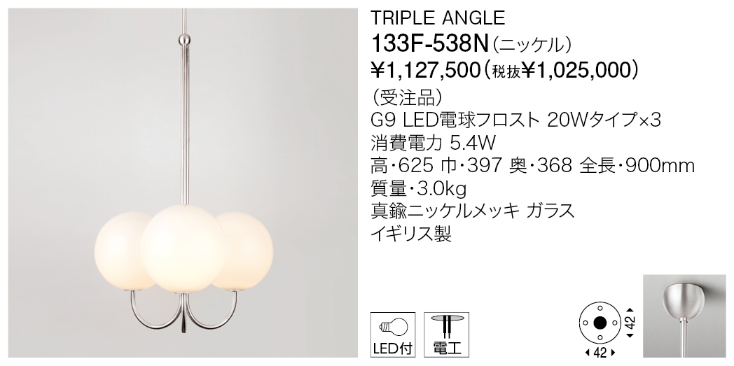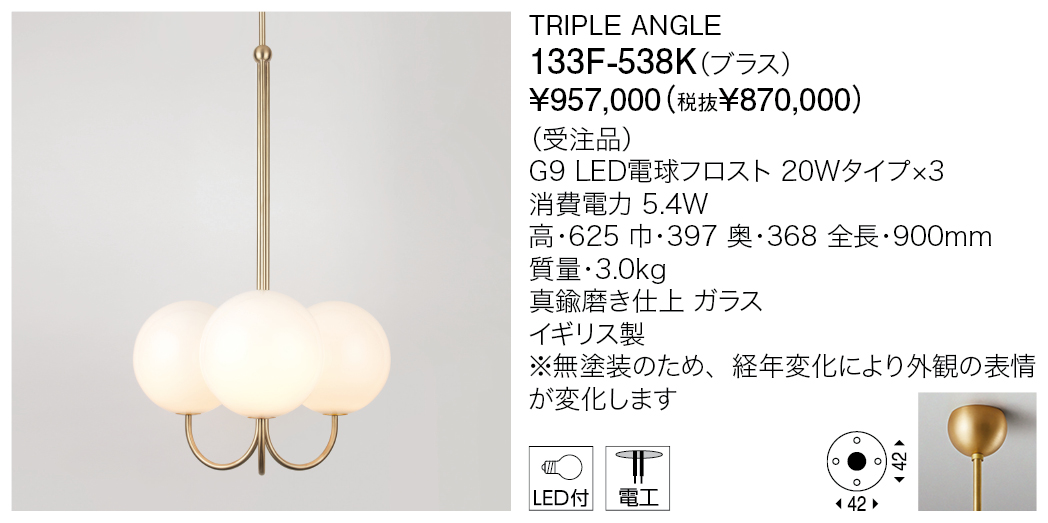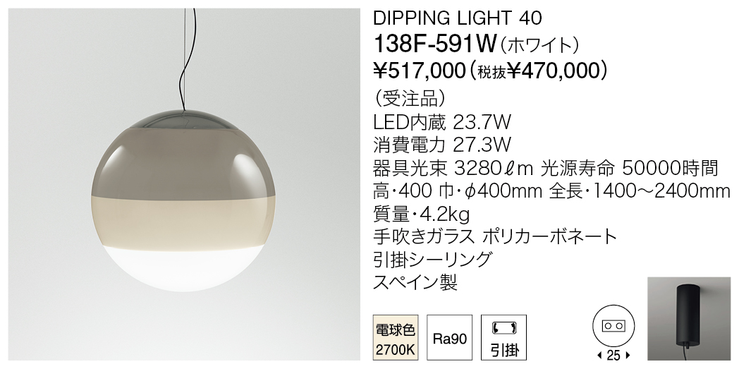 Result 検索結果 商品カテゴリー検索 ペンダント 検索結果:239件 現在選択中の条件 商品カテゴリー: インドア-ペンダント 材質: ガラス 商品カテゴリー 商品カテゴリー 選択して下さい インドア-ペンダント インドア-シーリング インドア-シャンデリア インドア-ブラケット インドア-スタンドライト インドア-システムライト アウトドア-屋外ダウンライト・シーリング アウトドア-屋外ブラケット アウトドア-屋外フットライト アウトドア-屋外スポットライト アウトドア-屋外地中埋設照明 アウトドア-屋外ボラード さらに絞り込む ブランド ブランド 選択して下さい YAMAGIWA &tradition(アンド・トラディション/デンマーク) Artek(アルテック/フィンランド) Artemide(アルテミデ/イタリア) Baccarat(バカラ/フランス) ClassiCon(クラシコン/ドイツ) FLOS(フロス/イタリア) FOSCARINI(フォスカリーニ/イタリア) FRITZ HANSEN(フリッツ・ハンセン/デンマーク) greenholt(グリーンホルト/デンマーク) HADELAND(ハーデラン/ノルウェー) INNOLUX(イノルクス/フィンランド) LASVIT(ラスビット/チェコ) LEE BROOM(リー・ブルーム/イギリス) LUCEPLAN(ルーチェプラン/イタリア) MADE BY HAND(メイド・バイ・ハンド/デンマーク) marset(マルセット/スペイン) MICHAELANASTASSIADES(マイケルアナスタシアデス/イギリス) NEMO(ネモ/イタリア) Northern(ノーザン/ノルウェー) ORIGINL BTC(オリジナルBTC/イギリス) Resident(レジデント/ニュージーランド) TOM DIXON(トム・ディクソン/イギリス) VENINI(ヴェニーニ/イタリア) VERPAN(ヴァーパン/デンマーク) VIBIA(ヴィビア/スペイン) WÄSTBERG(ヴァストベリ/スウェーデン) 商品タイプ ベース デコラティブ 和風 吸音 システムライト タスクライト テーブルライト フロアライト ベースライト アジャスタブル ウォールウォッシャー アクセサリー スポットライト ペンダントライト アームライト ミュージアム メディカル 吊り下げ 直付け 防湿/防雨防湿 オプション/パーツ類 光源タイプ LED一体型 LED電球 その他 白熱球 色温度 電球色2200K 電球色2350K 電球色3500K 電球色2700K 電球色3000K 温白色3500K 白色4000K 昼白色5000K 昼光色6500K 調色 カラー その他 器具光束 500ℓm以下 501~1500ℓm 1501~3000ℓm 3001ℓm以上 演色性 Ra 90 以上 リモコン・スイッチ・センサ 無線ユニット 調光・調色スイッチ付 スイッチ付 調光スイッチ付 リモコン付 タブレット別 取付方法 取付簡易型 引掛シーリング ライティングダクト 工事 フランジ・直付 ジャックイン 材質 選択中 金属 樹脂 木 布 ガラス 磁器 和紙 その他 照明データ 0 3D CADデータ IESデータ REVITデータ 配光データ 選択項目をすべて解除 ペンダント 検索結果:239件 投稿のページ送り 1 2 3 … 24 Next 投稿のページ送り 1 2 3 … 24 表示順 : 型番順 価格が安い順 価格が高い ページ内すべてを選択 選択を解除 チェックした項目をダウンロード 全て選択 小組画像 全て選択 仕様図 全て選択 取扱説明書 全て選択 姿図1 全て選択 姿図2 全て選択 配光データ 全て選択 IESデータ 全て選択 商品画像 全て選択 3D CAD 全て選択 REVITデータ 全て選択 STOCHASTIC D87SG 131F-461F 税込 ¥797,500 (税抜 ¥725,000) 色温度 3000K 演色性 90 この製品データを全て選択 小組画像 仕様図 取扱説明書 姿図1 姿図2 配光データ IESデータ 商品画像 3D CAD REVITデータ STOCHASTIC D87SP 131F-462F 税込 ¥646,800 (税抜 ¥588,000) 色温度 3000K 演色性 90 この製品データを全て選択 小組画像 仕様図 取扱説明書 姿図1 姿図2 配光データ IESデータ 商品画像 3D CAD REVITデータ TRIPLE ANGLE 133F-538K 税込 ¥1,042,800 (税抜 ¥948,000) この製品データを全て選択 小組画像 仕様図 取扱説明書 姿図1 姿図2 配光データ IESデータ 商品画像 3D CAD REVITデータ TRIPLE ANGLE 133F-538N 税込 ¥1,471,800 (税抜 ¥1,338,000) この製品データを全て選択 小組画像 仕様図 取扱説明書 姿図1 姿図2 配光データ IESデータ 商品画像 3D CAD REVITデータ DOUBLE ANGLE 133F-539K 税込 ¥937,200 (税抜 ¥852,000) この製品データを全て選択 小組画像 仕様図 取扱説明書 姿図1 姿図2 配光データ IESデータ 商品画像 3D CAD REVITデータ DOUBLE ANGLE 133F-539N 税込 ¥1,358,500 (税抜 ¥1,235,000) この製品データを全て選択 小組画像 仕様図 取扱説明書 姿図1 姿図2 配光データ IESデータ 商品画像 3D CAD REVITデータ BALL LIGHT LARGE FLEX 133P2952K 税込 ¥368,500 (税抜 ¥335,000) この製品データを全て選択 小組画像 仕様図 取扱説明書 姿図1 姿図2 配光データ IESデータ 商品画像 3D CAD REVITデータ NEW DIPPING LIGHT 40 138F-591M 税込 ¥517,000 (税抜 ¥470,000) 色温度 2700K 演色性 90 この製品データを全て選択 小組画像 仕様図 取扱説明書 姿図1 姿図2 配光データ IESデータ 商品画像 3D CAD REVITデータ NEW DIPPING LIGHT 40 138F-591T 税込 ¥517,000 (税抜 ¥470,000) 色温度 2700K 演色性 90 この製品データを全て選択 小組画像 仕様図 取扱説明書 姿図1 姿図2 配光データ IESデータ 商品画像 3D CAD REVITデータ NEW DIPPING LIGHT 40 138F-591W 税込 ¥517,000 (税抜 ¥470,000) 色温度 2700K 演色性 90 この製品データを全て選択 小組画像 仕様図 取扱説明書 姿図1 姿図2 配光データ IESデータ 商品画像 3D CAD REVITデータ ページ内