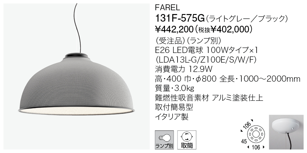Result 検索結果 商品カテゴリー検索 ペンダント 検索結果:114件 現在選択中の条件 商品カテゴリー: インドア-ペンダント 取付方法: 取付簡易型 商品カテゴリー 商品カテゴリー 選択して下さい インドア-ペンダント インドア-シーリング インドア-シャンデリア インドア-スポットライト さらに絞り込む ブランド ブランド 選択して下さい Davide Groppi YAMAGIWA CARPYEN(キャルピエン/スペイン) FLOS(フロス/イタリア) FRANK LLOYD WRIGHT®(フランク・ロイド・ライト) JAKOBSSON LAMP(ヤコブソンランプ) LASVIT(ラスビット/チェコ) LE KLINT(レ・クリント/デンマーク) LUCEPLAN(ルーチェプラン/イタリア) marset(マルセット/スペイン) VERPAN(ヴァーパン/デンマーク) VIBIA(ヴィビア/スペイン) 商品タイプ ベース デコラティブ 和風 吸音 システムライト タスクライト テーブルライト フロアライト ベースライト アジャスタブル ウォールウォッシャー アクセサリー スポットライト ペンダントライト アームライト ミュージアム メディカル 吊り下げ 直付け 防湿/防雨防湿 オプション/パーツ類 光源タイプ LED一体型 LED電球 その他 白熱球 色温度 電球色2200K 電球色2350K 電球色3500K 電球色2700K 電球色3000K 温白色3500K 白色4000K 昼白色5000K 昼光色6500K 調色 カラー その他 器具光束 500ℓm以下 501~1500ℓm 1501~3000ℓm 3001ℓm以上 演色性 Ra 90 以上 リモコン・スイッチ・センサ 無線ユニット 調光・調色スイッチ付 スイッチ付 調光スイッチ付 リモコン付 タブレット別 取付方法 選択中 取付簡易型 引掛シーリング ライティングダクト 工事 フランジ・直付 ジャックイン 材質 金属 樹脂 木 布 ガラス 磁器 和紙 その他 取付条件 傾斜天井可 照明データ 0 3D CADデータ IESデータ REVITデータ 配光データ 選択項目をすべて解除 ペンダント 検索結果:114件 投稿のページ送り 1 2 3 … 12 Next 投稿のページ送り 1 2 3 … 12 表示順 : 型番順 価格が安い順 価格が高い ページ内すべてを選択 選択を解除 チェックした項目をダウンロード 全て選択 小組画像 全て選択 仕様図 全て選択 取扱説明書 全て選択 姿図1 全て選択 姿図2 全て選択 配光データ 全て選択 IESデータ 全て選択 商品画像 全て選択 3D CAD 全て選択 REVITデータ 全て選択 FAREL(一時受注停止) 131F-490Y 税込 ¥495,000 (税抜 ¥450,000) この製品データを全て選択 小組画像 仕様図 取扱説明書 姿図1 姿図2 配光データ IESデータ 商品画像 3D CAD REVITデータ FAREL(カタログ非掲載) 131F-575G オープン価格 色温度 2700K この製品データを全て選択 小組画像 仕様図 取扱説明書 姿図1 姿図2 配光データ IESデータ 商品画像 3D CAD REVITデータ FAREL(カタログ非掲載) 131F-575X オープン価格 色温度 2700K この製品データを全て選択 小組画像 仕様図 取扱説明書 姿図1 姿図2 配光データ IESデータ 商品画像 3D CAD REVITデータ FAREL(一時受注停止) 131F-576G 税込 ¥495,000 (税抜 ¥450,000) この製品データを全て選択 小組画像 仕様図 取扱説明書 姿図1 姿図2 配光データ IESデータ 商品画像 3D CAD REVITデータ FAREL(一時受注停止) 131F-576R 税込 ¥495,000 (税抜 ¥450,000) この製品データを全て選択 小組画像 仕様図 取扱説明書 姿図1 姿図2 配光データ IESデータ 商品画像 3D CAD REVITデータ FAREL(一時受注停止) 131F-576X 税込 ¥495,000 (税抜 ¥450,000) この製品データを全て選択 小組画像 仕様図 取扱説明書 姿図1 姿図2 配光データ IESデータ 商品画像 3D CAD REVITデータ HOPE 131P2892 税込 ¥585,200 (税抜 ¥532,000) この製品データを全て選択 小組画像 仕様図 取扱説明書 姿図1 姿図2 配光データ IESデータ 商品画像 3D CAD REVITデータ HOPE 131P2893 税込 ¥453,200 (税抜 ¥412,000) この製品データを全て選択 小組画像 仕様図 取扱説明書 姿図1 姿図2 配光データ IESデータ 商品画像 3D CAD REVITデータ TAM TAM MINI 138F-520H 税込 ¥434,500 (税抜 ¥395,000) この製品データを全て選択 小組画像 仕様図 取扱説明書 姿図1 姿図2 配光データ IESデータ 商品画像 3D CAD REVITデータ TAM TAM MINI 138F-520L 税込 ¥434,500 (税抜 ¥395,000) この製品データを全て選択 小組画像 仕様図 取扱説明書 姿図1 姿図2 配光データ IESデータ 商品画像 3D CAD REVITデータ ページ内すべてを選択 選択を解除 チェックした項目をダウンロード 投稿のページ送り 1 2 3 … 12 Next 投稿のページ送り 1 2 3 … 12 Index