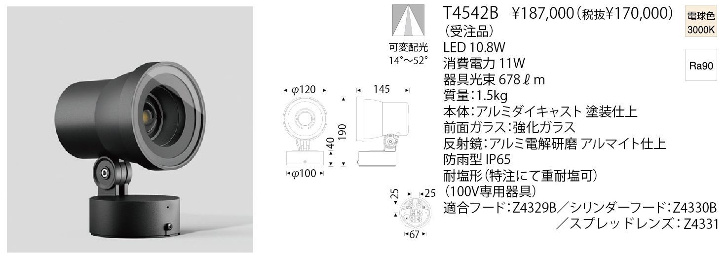 Result 検索結果 商品カテゴリー検索 屋外スポットライト 検索結果:4件 現在選択中の条件 商品カテゴリー: アウトドア-屋外スポットライト 配光角度: 可変 商品カテゴリー 商品カテゴリー 選択して下さい インドア-ダウンライト インドア-スポットライト インドア-システムライト アウトドア-屋外スポットライト さらに絞り込む ブランド ブランド 選択して下さい BEGA(ベガ/ドイツ) 商品タイプ ベース デコラティブ 和風 吸音 システムライト タスクライト テーブルライト フロアライト ベースライト アジャスタブル ウォールウォッシャー アクセサリー スポットライト ペンダントライト アームライト ミュージアム メディカル 吊り下げ 直付け 防湿/防雨防湿 オプション/パーツ類 光源タイプ LED一体型 LED電球 その他 白熱球 色温度 電球色2200K 電球色2350K 電球色3500K 電球色2700K 電球色3000K 温白色3500K 白色4000K 昼白色5000K 昼光色6500K 調色 カラー その他 器具光束 500ℓm以下 501~1500ℓm 1501~3000ℓm 3001ℓm以上 配光角度 選択中 〜7° 8°〜15° 16°〜24° 25°〜35° 36°〜 可変 取付方法 取付簡易型 引掛シーリング ライティングダクト 工事 フランジ・直付 ジャックイン 材質 金属 樹脂 木 布 ガラス 磁器 和紙 その他 照明データ 0 3D CADデータ IESデータ REVITデータ 配光データ 選択項目をすべて解除 屋外スポットライト 検索結果:4件 表示順 : 型番順 価格が安い順 価格が高い ページ内すべてを選択 選択を解除 チェックした項目をダウンロード 全て選択 小組画像 全て選択 仕様図 全て選択 取扱説明書 全て選択 姿図1 全て選択 姿図2 全て選択 配光データ 全て選択 IESデータ 全て選択 商品画像 全て選択 3D CAD 全て選択 REVITデータ 全て選択 FLOOD LIGHT ZOOMタイプ T4541B 税込 ¥242,000 (税抜 ¥220,000) 配光角度 可変 色温度 3000K 演色性 90 この製品データを全て選択 小組画像 仕様図 取扱説明書 姿図1 姿図2 配光データ IESデータ 商品画像 3D CAD REVITデータ FLOOD LIGHT ZOOMタイプ T4542B 税込 ¥198,000 (税抜 ¥180,000) 配光角度 可変 色温度 3000K 演色性 90 この製品データを全て選択 小組画像 仕様図 取扱説明書 姿図1 姿図2 配光データ IESデータ 商品画像 3D CAD REVITデータ FLOOD LIGHT ZOOMタイプ(スパイク付) T4543B 税込 ¥308,000 (税抜 ¥280,000) 配光角度 可変 色温度 3000K 演色性 90 この製品データを全て選択 小組画像 仕様図 取扱説明書 姿図1 姿図2 配光データ IESデータ 商品画像 3D CAD REVITデータ FLOOD LIGHT ZOOMタイプ(スパイク付) T4544B 税込 ¥275,000 (税抜 ¥250,000) 配光角度 可変 色温度 3000K 演色性 90 この製品データを全て選択 小組画像 仕様図 取扱説明書 姿図1 姿図2 配光データ IESデータ 商品画像 3D CAD REVITデータ ページ内すべてを選択 選択を解除 チェックした項目をダウンロード Index