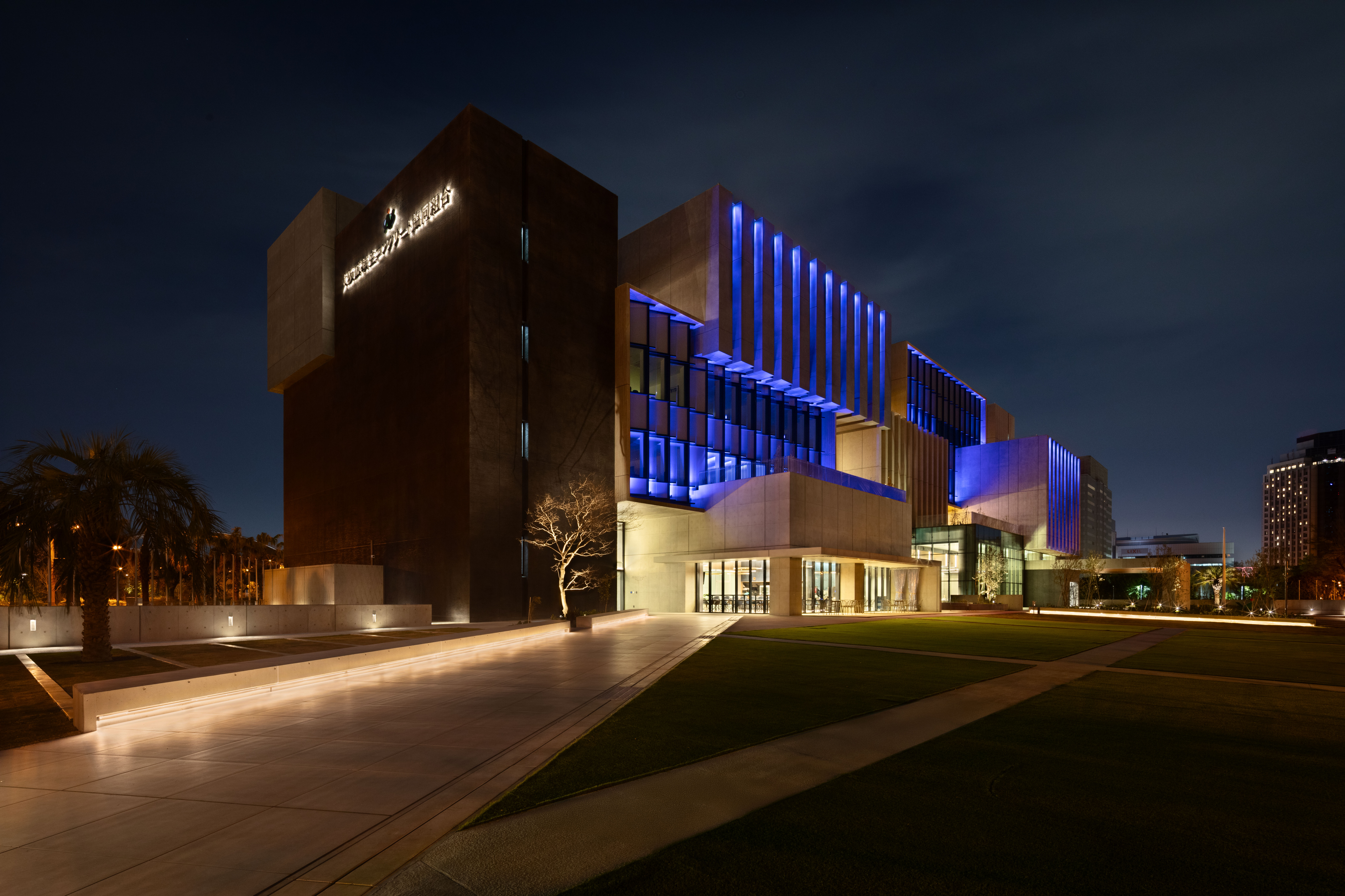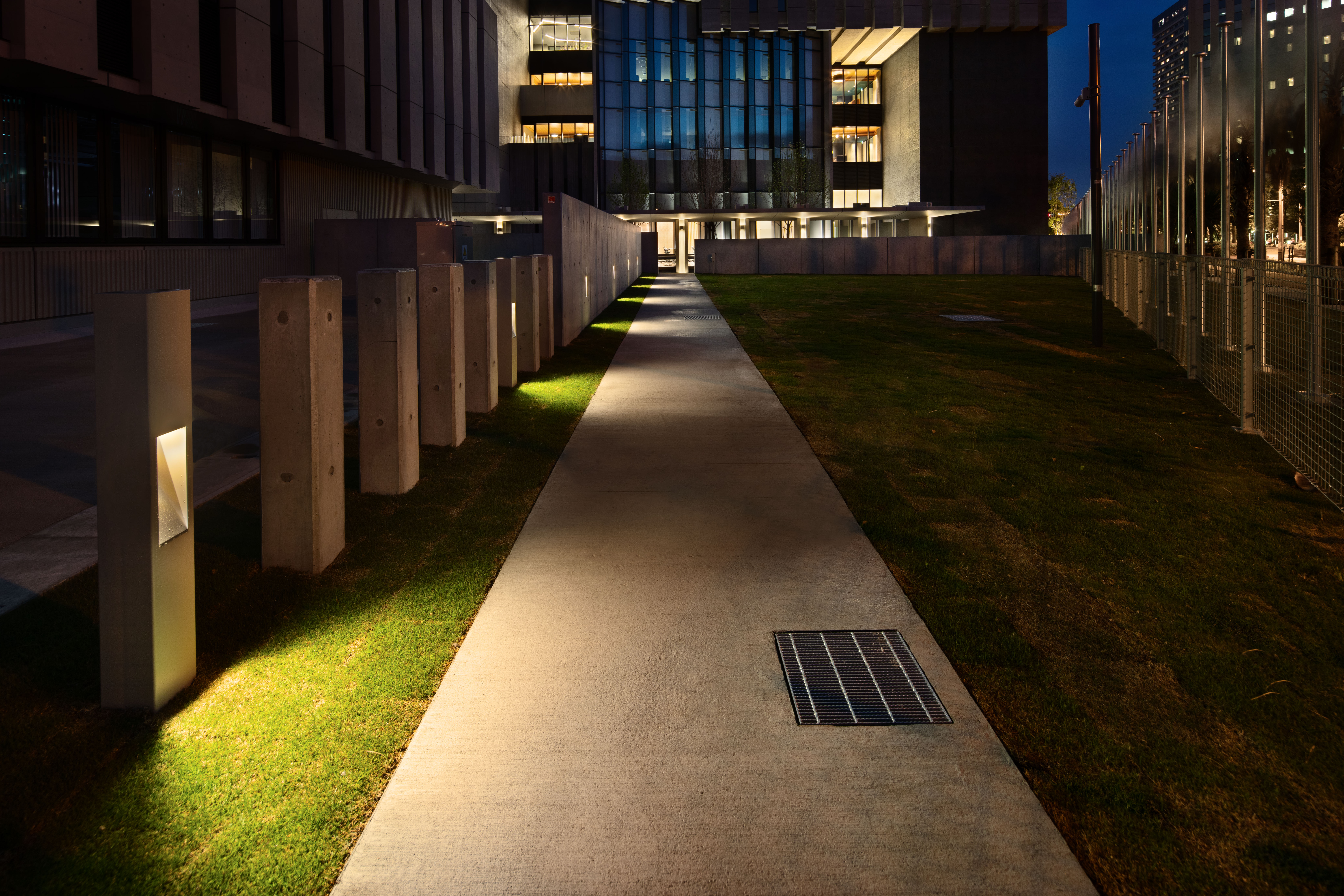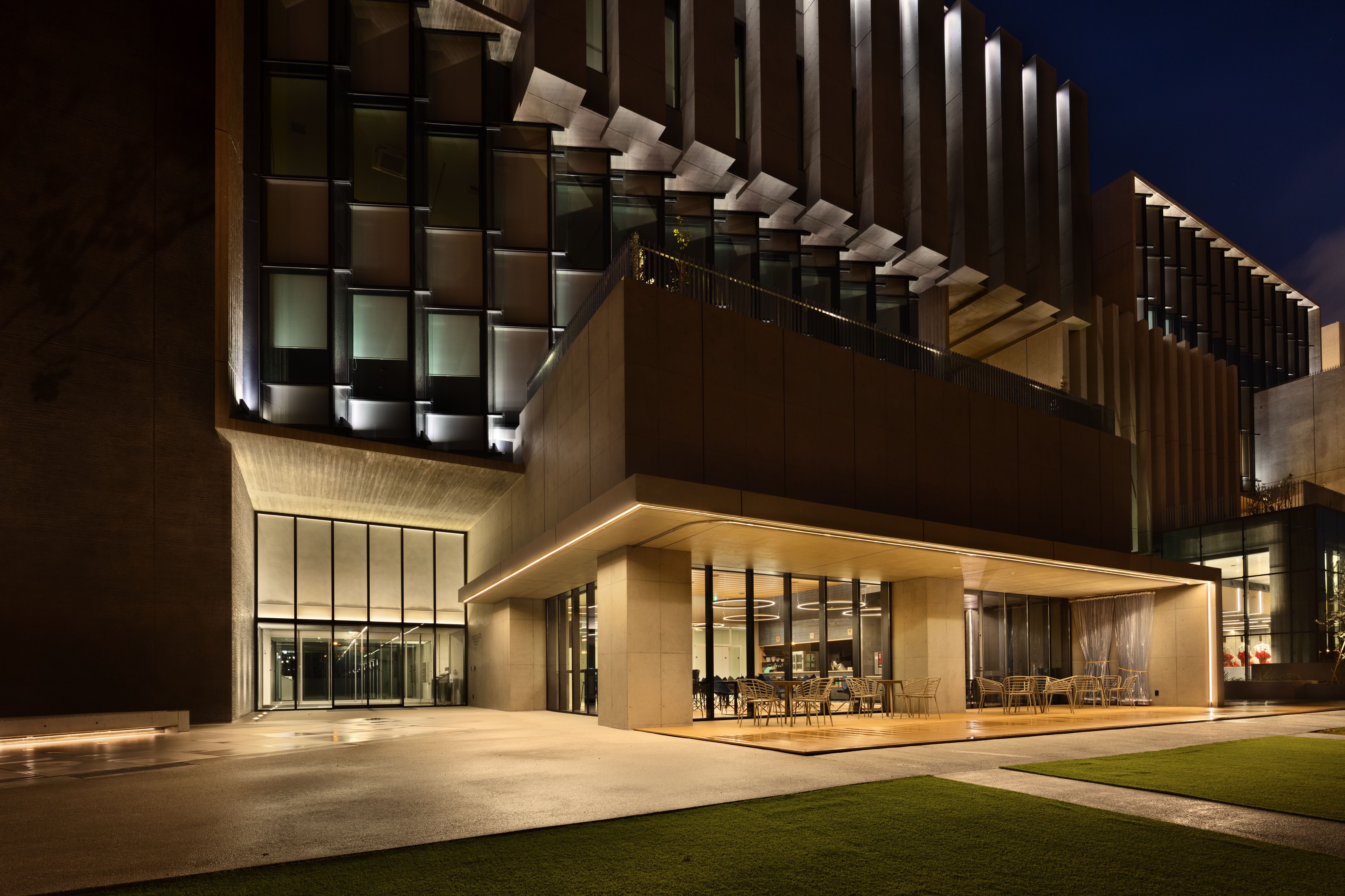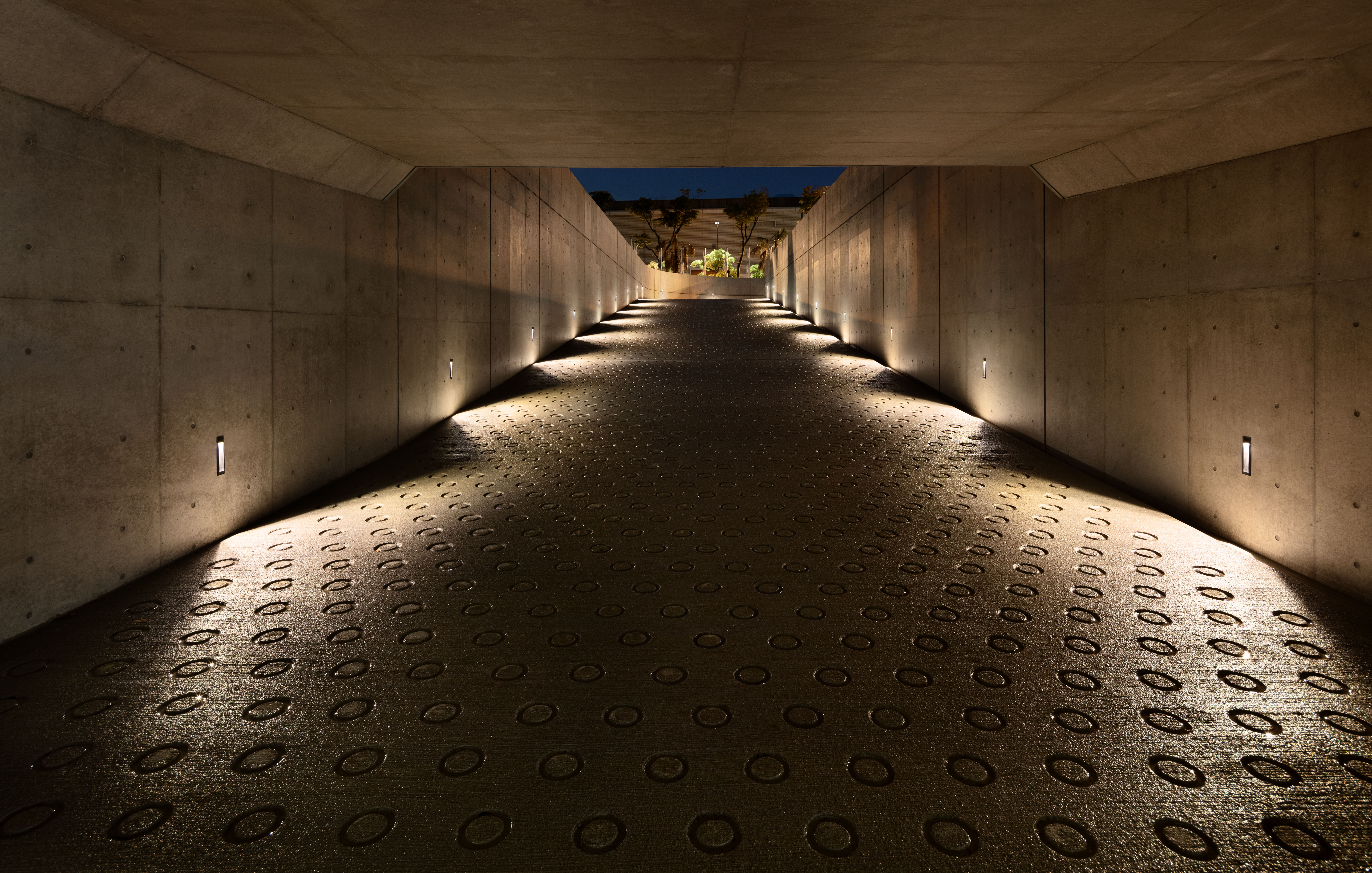 全国で300以上ある生コンクリート協同組合の中で最大規模を誇る、大阪広域生コンクリート協同組合。近畿一円に広く生コンを共同販売する同組合は、新たな本部オフィスおよび研究開発拠点として「テクノ・ラボ大阪」を新設、2025年3月に工事が完了、4月から通常営業を開始しました。梓設計様による施設建物は、同組合のほか関係団体が入居する事務所棟と、産官学が連携して生コンの最先端技術を研究開発する研究棟が一体となった構造で、生コン業界のシンボルとなる意匠と機能を実現しています。YAMAGIWAは、照明計画を担当したAZU設計工房様と協働、緻密な現場フォローにより、パブリックエリアだけでなく、ファサードのフルカラーライトアップ、事務所棟のオフィスライティングなど、外構を含め全エリアに照明器具を納入しています。