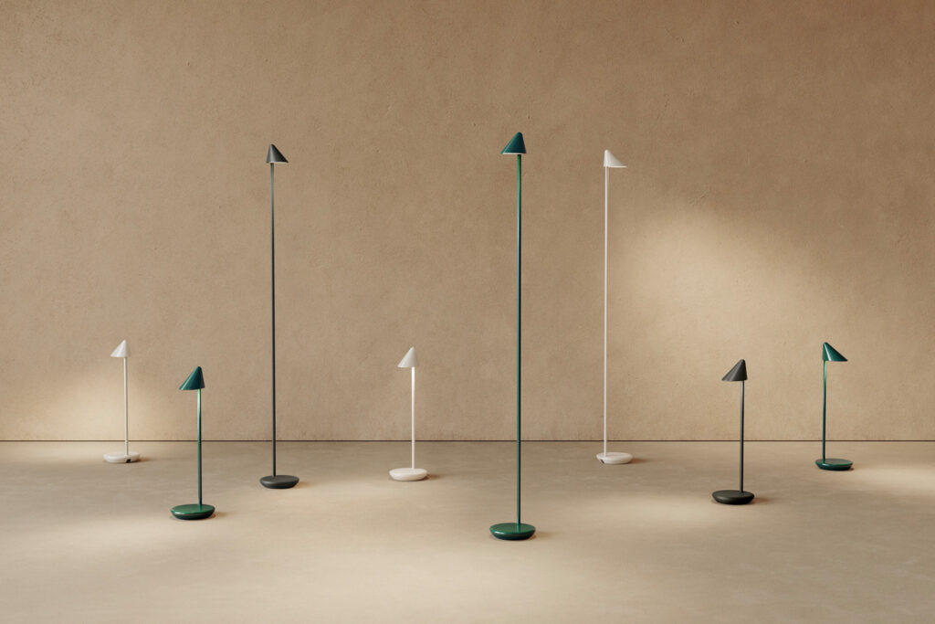 ラインナップは、タイムレスなシルエットのデスクライトと、H1100mmのスタンドライトの2種をご用意しました。スタンドは、ソファの背面に置けば読書する手元だけを、ダイニングテーブル脇では卓の中心だけをそっと照らし、会話と余白を生む環境を整えます。どちらも軽やかに持ち運べるポータブル設計で、周囲の輝度を整え、 デジタルデバイスとも静かに調和します。カラーパレットは絹のような白、 鋳肌を思わせるマットブラック、鮮やかなグリーンの3色を展開。それぞれに、精密な工業技術にクラフトの質感が息づく独自の仕上げを施しました。