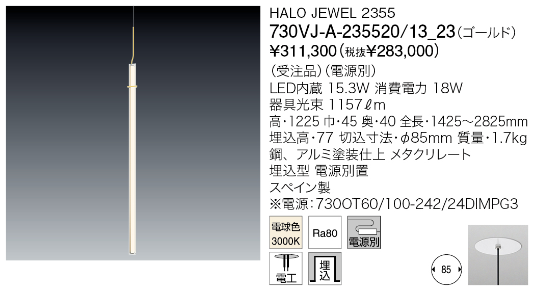 Result 検索結果 商品カテゴリー検索 ペンダント 検索結果:160件 現在選択中の条件 商品カテゴリー: インドア-ペンダント 器具光束: 501~1500ℓm 商品カテゴリー 商品カテゴリー 選択して下さい インドア-ペンダント インドア-シーリング インドア-シャンデリア インドア-ブラケット インドア-スタンドライト インドア-ダウンライト インドア-ベースライト インドア-間接照明 インドア-スポットライト インドア-システムライト アウトドア-屋外ダウンライト・シーリング アウトドア-屋外ブラケット アウトドア-屋外フットライト アウトドア-屋外スポットライト アウトドア-屋外地中埋設照明 アウトドア-屋外水中照明 アウトドア-屋外ボラード アウトドア-屋外ポール灯 さらに絞り込む ブランド ブランド 選択して下さい New Works Davide Groppi YAMAGIWA &tradition(アンド・トラディション/デンマーク) Artemide(アルテミデ/イタリア) CARPYEN(キャルピエン/スペイン) DOMUS(ドムス/ドイツ) Estiluz(エスティルース/スペイン) FLOS(フロス/イタリア) FOSCARINI(フォスカリーニ/イタリア) FRITZ HANSEN(フリッツ・ハンセン/デンマーク) hollands licht(ホランズリヒト/オランダ) LASVIT(ラスビット/チェコ) LLADRO(リヤドロ/スペイン) LUCEPLAN(ルーチェプラン/イタリア) LZF(ルシフェル/スペイン) MADE BY HAND(メイド・バイ・ハンド/デンマーク) marset(マルセット/スペイン) MICHAELANASTASSIADES(マイケルアナスタシアデス/イギリス) NEMO(ネモ/イタリア) PANDUL(パンドゥル/デンマーク) PLN GROUP(PLNグループ/ニュージーランド) TOM DIXON(トム・ディクソン/イギリス) Tom Rossau(トム・ロッサウ/デンマーク) VERPAN(ヴァーパン/デンマーク) VIBIA(ヴィビア/スペイン) 商品タイプ ベース デコラティブ 和風 吸音 システムライト タスクライト テーブルライト フロアライト ベースライト アジャスタブル ウォールウォッシャー アクセサリー スポットライト ペンダントライト アームライト ミュージアム メディカル 吊り下げ 直付け 防湿/防雨防湿 オプション/パーツ類 光源タイプ LED一体型 LED電球 その他 白熱球 色温度 電球色2200K 電球色2350K 電球色3500K 電球色2700K 電球色3000K 温白色3500K 白色4000K 昼白色5000K 昼光色6500K 調色 カラー その他 器具光束 選択中 500ℓm以下 501~1500ℓm 1501~3000ℓm 3001ℓm以上 演色性 Ra 90 以上 リモコン・スイッチ・センサ 無線ユニット 調光・調色スイッチ付 スイッチ付 調光スイッチ付 リモコン付 タブレット別 取付方法 取付簡易型 引掛シーリング ライティングダクト 工事 フランジ・直付 ジャックイン 材質 金属 樹脂 木 布 ガラス 磁器 和紙 その他 取付条件 傾斜天井可 照明データ 0 3D CADデータ IESデータ REVITデータ 配光データ 選択項目をすべて解除 ペンダント 検索結果:160件 投稿のページ送り Prev 1 … 9 10 11 12 13 … 16 Next 投稿のページ送り 1 … 9 10 11 12 13 … 16 表示順 : 型番順 価格が安い順 価格が高い ページ内すべてを選択 選択を解除 チェックした項目をダウンロード 全て選択 小組画像 全て選択 仕様図 全て選択 取扱説明書 全て選択 姿図1 全て選択 姿図2 全て選択 配光データ 全て選択 IESデータ 全て選択 商品画像 全て選択 3D CAD 全て選択 REVITデータ 全て選択 NEW UNBEATEN FLAT PENDANT LED 725TL32UBT06-ALO 税込 ¥165,000 (税抜 ¥150,000) 色温度 3000K 演色性 90 この製品データを全て選択 小組画像 仕様図 取扱説明書 姿図1 姿図2 配光データ IESデータ 商品画像 3D CAD REVITデータ HALO JEWEL 2355(一時受注停止) 730VJ-A-235511/13_23 税込 ¥232,100 (税抜 ¥211,000) 色温度 3000K 演色性 80 この製品データを全て選択 小組画像 仕様図 取扱説明書 姿図1 姿図2 配光データ IESデータ 商品画像 3D CAD REVITデータ HALO JEWEL 2355(一時受注停止) 730VJ-A-235520/13_23 税込 ¥311,300 (税抜 ¥283,000) 色温度 3000K 演色性 80 この製品データを全て選択 小組画像 仕様図 取扱説明書 姿図1 姿図2 配光データ IESデータ 商品画像 3D CAD REVITデータ SKAN 0270(一時受注停止) 730VJ-H-027010/1B 税込 ¥146,300 (税抜 ¥133,000) 色温度 2700K 演色性 80 この製品データを全て選択 小組画像 仕様図 取扱説明書 姿図1 姿図2 配光データ IESデータ 商品画像 3D CAD REVITデータ SKAN 0270(一時受注停止) 730VJ-H-027011/1B 税込 ¥146,300 (税抜 ¥133,000) 色温度 2700K 演色性 80 この製品データを全て選択 小組画像 仕様図 取扱説明書 姿図1 姿図2 配光データ IESデータ 商品画像 3D CAD REVITデータ SKAN 0270(一時受注停止) 730VJ-H-027024/1B 税込 ¥146,300 (税抜 ¥133,000) 色温度 2700K 演色性 80 この製品データを全て選択 小組画像 仕様図 取扱説明書 姿図1 姿図2 配光データ IESデータ 商品画像 3D CAD REVITデータ SKAN 0270(一時受注停止) 730VJ-H-027047/1B 税込 ¥146,300 (税抜 ¥133,000) 色温度 2700K 演色性 80 この製品データを全て選択 小組画像 仕様図 取扱説明書 姿図1 姿図2 配光データ IESデータ 商品画像 3D CAD REVITデータ SKAN 0275(一時受注停止) 730VJ-H-027510/1B 税込 ¥243,100 (税抜 ¥221,000) 色温度 2700K 演色性 80 この製品データを全て選択 小組画像 仕様図 取扱説明書 姿図1 姿図2 配光データ IESデータ 商品画像 3D CAD REVITデータ SKAN 0275(一時受注停止) 730VJ-H-02