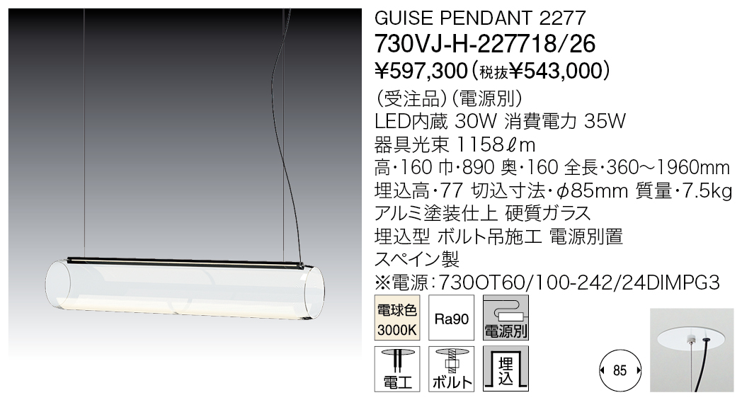 Result 検索結果 商品カテゴリー検索 ペンダント 検索結果:160件 現在選択中の条件 商品カテゴリー: インドア-ペンダント 器具光束: 501~1500ℓm 商品カテゴリー 商品カテゴリー 選択して下さい インドア-ペンダント インドア-シーリング インドア-シャンデリア インドア-ブラケット インドア-スタンドライト インドア-ダウンライト インドア-ベースライト インドア-間接照明 インドア-スポットライト インドア-システムライト アウトドア-屋外ダウンライト・シーリング アウトドア-屋外ブラケット アウトドア-屋外フットライト アウトドア-屋外スポットライト アウトドア-屋外地中埋設照明 アウトドア-屋外水中照明 アウトドア-屋外ボラード アウトドア-屋外ポール灯 さらに絞り込む ブランド ブランド 選択して下さい New Works Davide Groppi YAMAGIWA &tradition(アンド・トラディション/デンマーク) Artemide(アルテミデ/イタリア) CARPYEN(キャルピエン/スペイン) DOMUS(ドムス/ドイツ) Estiluz(エスティルース/スペイン) FLOS(フロス/イタリア) FOSCARINI(フォスカリーニ/イタリア) FRITZ HANSEN(フリッツ・ハンセン/デンマーク) hollands licht(ホランズリヒト/オランダ) LASVIT(ラスビット/チェコ) LLADRO(リヤドロ/スペイン) LUCEPLAN(ルーチェプラン/イタリア) LZF(ルシフェル/スペイン) MADE BY HAND(メイド・バイ・ハンド/デンマーク) marset(マルセット/スペイン) MICHAELANASTASSIADES(マイケルアナスタシアデス/イギリス) NEMO(ネモ/イタリア) PANDUL(パンドゥル/デンマーク) PLN GROUP(PLNグループ/ニュージーランド) TOM DIXON(トム・ディクソン/イギリス) Tom Rossau(トム・ロッサウ/デンマーク) VERPAN(ヴァーパン/デンマーク) VIBIA(ヴィビア/スペイン) 商品タイプ ベース デコラティブ 和風 吸音 システムライト タスクライト テーブルライト フロアライト ベースライト アジャスタブル ウォールウォッシャー アクセサリー スポットライト ペンダントライト アームライト ミュージアム メディカル 吊り下げ 直付け 防湿/防雨防湿 オプション/パーツ類 光源タイプ LED一体型 LED電球 その他 白熱球 色温度 電球色2200K 電球色2350K 電球色3500K 電球色2700K 電球色3000K 温白色3500K 白色4000K 昼白色5000K 昼光色6500K 調色 カラー その他 器具光束 選択中 500ℓm以下 501~1500ℓm 1501~3000ℓm 3001ℓm以上 演色性 Ra 90 以上 リモコン・スイッチ・センサ 無線ユニット 調光・調色スイッチ付 スイッチ付 調光スイッチ付 リモコン付 タブレット別 取付方法 取付簡易型 引掛シーリング ライティングダクト 工事 フランジ・直付 ジャックイン 材質 金属 樹脂 木 布 ガラス 磁器 和紙 その他 取付条件 傾斜天井可 照明データ 0 3D CADデータ IESデータ REVITデータ 配光データ 選択項目をすべて解除 ペンダント 検索結果:160件 投稿のページ送り Prev 1 … 10 11 12 13 14 … 16 Next 投稿のページ送り 1 … 10 11 12 13 14 … 16 表示順 : 型番順 価格が安い順 価格が高い ページ内すべてを選択 選択を解除 チェックした項目をダウンロード 全て選択 小組画像 全て選択 仕様図 全て選択 取扱説明書 全て選択 姿図1 全て選択 姿図2 全て選択 配光データ 全て選択 IESデータ 全て選択 商品画像 全て選択 3D CAD 全て選択 REVITデータ 全て選択 SKAN 0275(一時受注停止) 730VJ-H-027547/1B 税込 ¥243,100 (税抜 ¥221,000) 色温度 2700K 演色性 80 この製品データを全て選択 小組画像 仕様図 取扱説明書 姿図1 姿図2 配光データ IESデータ 商品画像 3D CAD REVITデータ WIREFLOW PENDANT SQUARE 0309(一時受注停止) 730VJ-H-030904/1A 税込 ¥408,100 (税抜 ¥371,000) 色温度 2700K 演色性 80 この製品データを全て選択 小組画像 仕様図 取扱説明書 姿図1 姿図2 配光データ IESデータ 商品画像 3D CAD REVITデータ WIREFLOW PENDANT SQUARE 0312(一時受注停止) 730VJ-H-031204/1A 税込 ¥374,000 (税抜 ¥340,000) 色温度 2700K 演色性 80 この製品データを全て選択 小組画像 仕様図 取扱説明書 姿図1 姿図2 配光データ IESデータ 商品画像 3D CAD REVITデータ FLAMINGO 1510(一時受注停止) 730VJ-H-151018/1B 税込 ¥356,400 (税抜 ¥324,000) 色温度 2700K 演色性 80 この製品データを全て選択 小組画像 仕様図 取扱説明書 姿図1 姿図2 配光データ IESデータ 商品画像 3D CAD REVITデータ FLAMINGO 1510(一時受注停止) 730VJ-H-151020/1B 税込 ¥356,400 (税抜 ¥324,000) 色温度 2700K 演色性 80 この製品データを全て選択 小組画像 仕様図 取扱説明書 姿図1 姿図2 配光データ IESデータ 商品画像 3D CAD REVITデータ FLAMINGO 1510(一時受注停止) 730VJ-H-151093/1B 税込 ¥356,400 (税抜 ¥324,000) 色温度 2700K 演色性 80 この製品データを全て選択 小組画像 仕様図 取扱説明書 姿図1 姿図2 配光データ IESデータ 商品画像 3D CAD REVITデータ FLAMINGO 1540(一時受注停止) 730VJ-H-154018/1B 税込 ¥326,700 (税抜 ¥297,000) 色温度 2700K 演色性 80 この製品データを全て選択 小組画像 仕様図 取扱説明書 姿図1 姿図2 配光データ IESデータ 商品画像 3D CAD REVITデータ FLAMINGO 1540(一時受注停止) 730VJ-H-154020/1B 税込 ¥326,700 (税抜 ¥297,000) 色温度 2700K 演色性 80 この製品データを全て選択 小組画像 仕様図 取扱説明書 姿図1 姿図2 配光データ IESデータ 商品画像 3D CAD REVITデー