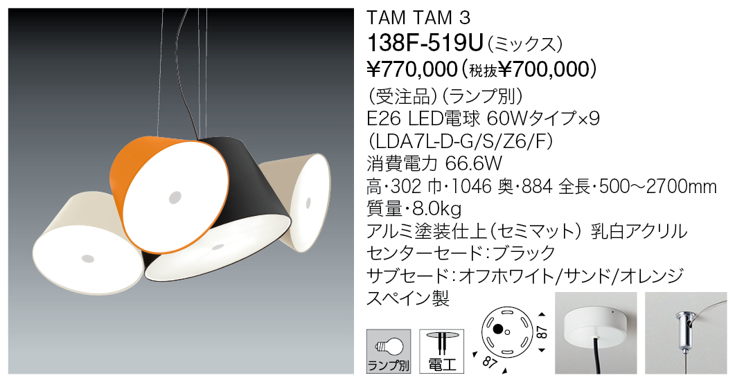 Result 検索結果 商品カテゴリー検索 ペンダント 検索結果:1195件 現在選択中の条件 商品カテゴリー: インドア-ペンダント 商品カテゴリー 商品カテゴリー 選択して下さい インドア-ペンダント インドア-シーリング インドア-シャンデリア インドア-ブラケット インドア-スタンドライト インドア-ダウンライト インドア-ベースライト インドア-間接照明 インドア-スポットライト インドア-システムライト アウトドア-屋外ダウンライト・シーリング アウトドア-屋外ブラケット アウトドア-屋外フットライト アウトドア-屋外スポットライト アウトドア-屋外地中埋設照明 アウトドア-屋外水中照明 アウトドア-屋外ボラード アウトドア-屋外ポール灯 さらに絞り込む ブランド ブランド 選択して下さい New Works Davide Groppi アークテイク OSRAM YAMAGIWA ASTEP(アステップ/デンマーク) &tradition(アンド・トラディション/デンマーク) Artek(アルテック/フィンランド) Artemide(アルテミデ/イタリア) Baccarat(バカラ/フランス) CARPYEN(キャルピエン/スペイン) ClassiCon(クラシコン/ドイツ) DCW éditions(DCWエディションズ/フランス) designtree(デザインツリー/ニュージーランド) DOMUS(ドムス/ドイツ) Estiluz(エスティルース/スペイン) FLOS(フロス/イタリア) FOSCARINI(フォスカリーニ/イタリア) FRANK LLOYD WRIGHT®(フランク・ロイド・ライト) FRITZ HANSEN(フリッツ・ハンセン/デンマーク) greenholt(グリーンホルト/デンマーク) Herman Miller(ハーマンミラー/アメリカ) HADELAND(ハーデラン/ノルウェー) hollands licht(ホランズリヒト/オランダ) INNOLUX(イノルクス/フィンランド) INGO MAURER(インゴ・マウラー/ドイツ) ILTI LUCE(イルティルーチェ/イタリア) JAKOBSSON LAMP(ヤコブソンランプ) LASVIT(ラスビット/チェコ) LEE BROOM(リー・ブルーム/イギリス) LE KLINT(レ・クリント/デンマーク) LLADRO(リヤドロ/スペイン) LUCEPLAN(ルーチェプラン/イタリア) LZF(ルシフェル/スペイン) MADE BY HAND(メイド・バイ・ハンド/デンマーク) marset(マルセット/スペイン) MICHAELANASTASSIADES(マイケルアナスタシアデス/イギリス) MOLTO LUCE(モルトルーチェ/オーストリア) MUUTO(ムート/デンマーク) NEMO(ネモ/イタリア) Northern(ノーザン/ノルウェー) NYTA(ニュイタ/ドイツ) ORIGINL BTC(オリジナルBTC/イギリス) PANDUL(パンドゥル/デンマーク) PLN GROUP(PLNグループ/ニュージーランド) Resident(レジデント/ニュージーランド) TOM DIXON(トム・ディクソン/イギリス) Tom Rossau(トム・ロッサウ/デンマーク) VENINI(ヴェニーニ/イタリア) VERPAN(ヴァーパン/デンマーク) VIBIA(ヴィビア/スペイン) WÄSTBERG(ヴァストベリ/スウェーデン) 商品タイプ ベース デコラティブ 和風 吸音 システムライト タスクライト テーブルライト フロアライト ベースライト アジャスタブル ウォールウォッシャー アクセサリー スポットライト ペンダントライト アームライト ミュージアム メディカル 吊り下げ 直付け 防湿/防雨防湿 オプション/パーツ類 光源タイプ LED一体型 LED電球 その他 白熱球 色温度 電球色2200K 電球色2350K 電球色3500K 電球色2700K 電球色3000K 温白色3500K 白色4000K 昼白色5000K 昼光色6500K 調色 カラー その他 器具光束 500ℓm以下 501~1500ℓm 1501~3000ℓm 3001ℓm以上 演色性 Ra 90 以上 リモコン・スイッチ・センサ 無線ユニット 調光・調色スイッチ付 スイッチ付 調光スイッチ付 リモコン付 タブレット別 取付方法 取付簡易型 引掛シーリング ライティングダクト 工事 フランジ・直付 ジャックイン 材質 金属 樹脂 木 布 ガラス 磁器 和紙 その他 取付条件 傾斜天井可 照明データ 0 3D CADデータ IESデータ REVITデータ 配光データ 選択項目をすべて解除 ペンダント 検索結果:1195件 投稿のページ送り Prev 1 … 16 17 18 19 20 … 120 Next 投稿のページ送り 1 … 16 17 18 19 20 … 120 表示順 : 型番順 価格が安い順 価格が高い ページ内すべてを選択 選択を解除 チェックした項目をダウンロード 全て選択 小組画像 全て選択 仕様図 全て選択 取扱説明書 全て選択 姿図1 全て選択 姿図2 全て選択 配光データ 全て選択 IESデータ 全て選択 商品画像 全て選択 3D CAD 全て選択 REVITデータ 全て選択 LED GINGER 32 138F-455H 税込 ¥254,100 (税抜 ¥231,000) 色温度 2700K 演色性 90 この製品データを全て選択 小組画像 仕様図 取扱説明書 姿図1 姿図2 配光データ IESデータ 商品画像 3D CAD REVITデータ LED GINGER 32 138F-455K 税込 ¥319,000 (税抜 ¥290,000) 色温度 2700K 演色性 90 この製品データを全て選択 小組画像 仕様図 取扱説明書 姿図1 姿図2 配光データ IESデータ 商品画像 3D CAD REVITデータ LED GINGER 32 138F-455L 税込 ¥254,100 (税抜 ¥231,000) 色温度 2700K 演色性 90 この製品データを全て選択 小組画像 仕様図 取扱説明書 姿図1 姿図2 配光データ IESデータ 商品画像 3D CAD REVITデータ TAM TAM 3 138F-519H 税込 ¥806,300 (税抜 ¥733,000) この製品データを全て選択 小組画像 仕様図 取扱説明書 姿図1 姿図2 配光データ IESデータ 商品画像 3D CAD REVITデータ TAM TAM 3 138F-519L 税込 ¥806,300 (税抜 ¥733,000) この製品データを全て選択 小組画像 仕様図 取扱説明書 姿図1 姿図2 配光データ IESデータ 商品画像 3D CAD