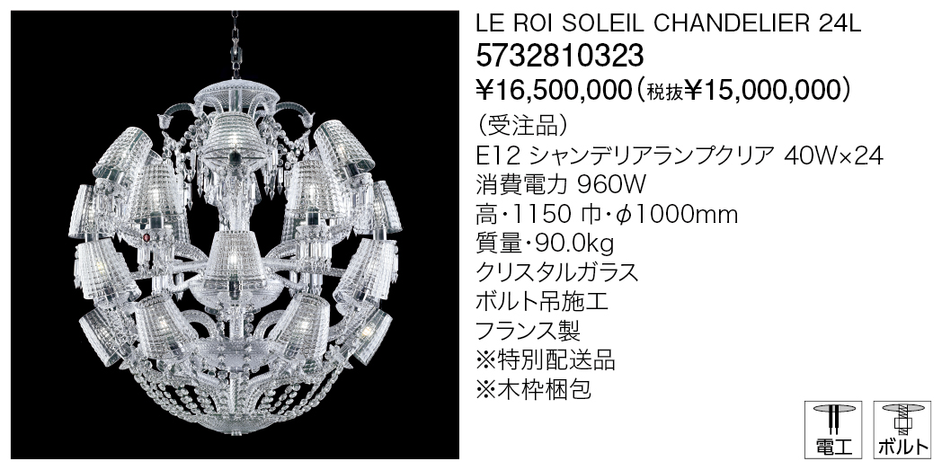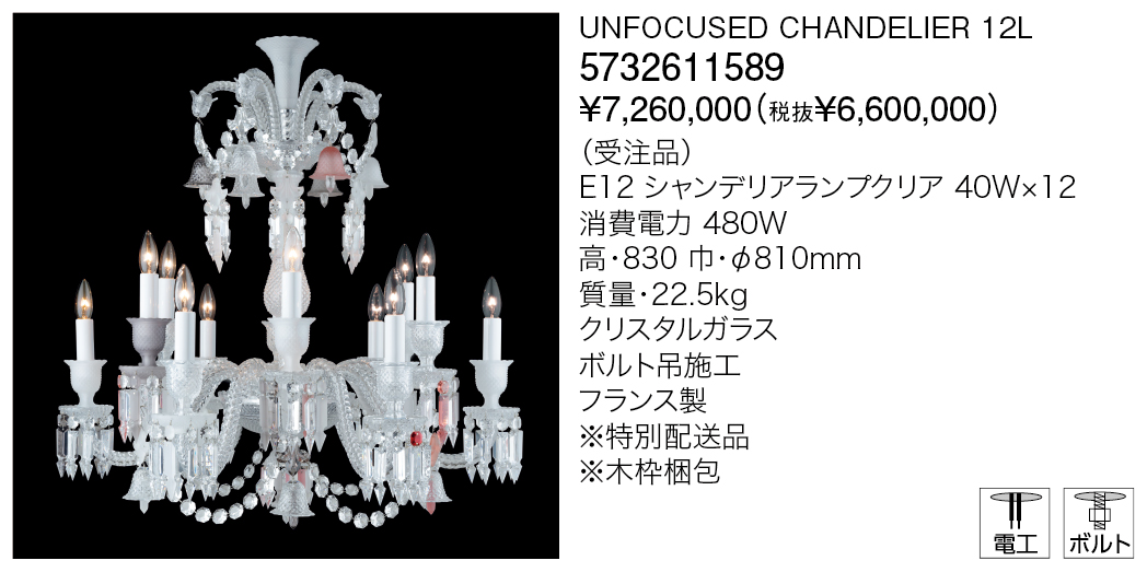 Result 検索結果 ブランド検索 Baccarat(バカラ/フランス) 1764年創設、250年もの歴史をもつクリスタルのラグジュアリーブランド。1827年、フランスのクリスタルブランドとして初めてシャンデリアを発表。フィリップ・スタルクなど様々なデザイナーとコラボレーションした作品も発表しています。 検索結果:37件 現在選択中の条件 ブランド: Baccarat(バカラ/フランス) ブランド ブランド 選択して下さい Midgard Licht New Works Davide Groppi アークテイク OSRAM YAMAGIWA ASTEP(アステップ/デンマーク) &tradition(アンド・トラディション/デンマーク) Artek(アルテック/フィンランド) Artemide(アルテミデ/イタリア) Baccarat(バカラ/フランス) B.C. SAN MICHELE(BC サン・ミッシェル/イタリア) BEGA(ベガ/ドイツ) CARPYEN(キャルピエン/スペイン) ClassiCon(クラシコン/ドイツ) DCW éditions(DCWエディションズ/フランス) designtree(デザインツリー/ニュージーランド) DOMUS(ドムス/ドイツ) Estiluz(エスティルース/スペイン) FLOS(フロス/イタリア) FOSCARINI(フォスカリーニ/イタリア) frosted FRANK LLOYD WRIGHT®(フランク・ロイド・ライト) FRITZ HANSEN(フリッツ・ハンセン/デンマーク) greenholt(グリーンホルト/デンマーク) Herman Miller(ハーマンミラー/アメリカ) HADELAND(ハーデラン/ノルウェー) hollands licht(ホランズリヒト/オランダ) HALO EDITION(ハロ・エディション/イタリア) INNOLUX(イノルクス/フィンランド) INGO MAURER(インゴ・マウラー/ドイツ) ILTI LUCE(イルティルーチェ/イタリア) ITALAMP(イタランプ/イタリア) JAKOBSSON LAMP(ヤコブソンランプ) Karakter(カラクター/デンマーク) kdln(クンダリーニ/イタリア) LaLampa(ラランパ/ラトビア) LASVIT(ラスビット/チェコ) LEE BROOM(リー・ブルーム/イギリス) LE KLINT(レ・クリント/デンマーク) LLADRO(リヤドロ/スペイン) louis poulsen(ルイスポールセン/デンマーク) LUCEPLAN(ルーチェプラン/イタリア) LZF(ルシフェル/スペイン) MADE BY HAND(メイド・バイ・ハンド/デンマーク) Manooi(マノーイ/ハンガリー) marset(マルセット/スペイン) MICHAELANASTASSIADES(マイケルアナスタシアデス/イギリス) MOLTO LUCE(モルトルーチェ/オーストリア) MUUTO(ムート/デンマーク) NEMO(ネモ/イタリア) Northern(ノーザン/ノルウェー) NYTA(ニュイタ/ドイツ) ORIGINL BTC(オリジナルBTC/イギリス) PANDUL(パンドゥル/デンマーク) PRECIOSA(プレシオーサ/チェコ) PLN GROUP(PLNグループ/ニュージーランド) Resident(レジデント/ニュージーランド) SAMMODE STUDIO(サンモードスタジオ/フランス) TECNO LUMEN(テクノルーメン/ドイツ) TOM DIXON(トム・ディクソン/イギリス) Tom Rossau(トム・ロッサウ/デンマーク) VENINI(ヴェニーニ/イタリア) VERPAN(ヴァーパン/デンマーク) VIBIA(ヴィビア/スペイン) Vitra(ヴィトラ/スイス) WÄSTBERG(ヴァストベリ/スウェーデン) さらに絞り込む 商品カテゴリー 商品カテゴリー 選択して下さい インドア-ペンダント インドア-シャンデリア インドア-ブラケット インドア-スタンドライト 商品タイプ ベース デコラティブ 和風 吸音 システムライト タスクライト テーブルライト フロアライト ベースライト アジャスタブル ウォールウォッシャー アクセサリー スポットライト ペンダントライト アームライト ミュージアム メディカル 吊り下げ 直付け 防湿/防雨防湿 オプション/パーツ類 光源タイプ LED一体型 LED電球 その他 白熱球 色温度 電球色2200K 電球色2350K 電球色3500K 電球色2700K 電球色3000K 温白色3500K 白色4000K 昼白色5000K 昼光色6500K 調色 カラー その他 器具光束 500ℓm以下 501~1500ℓm 1501~3000ℓm 3001ℓm以上 演色性 Ra 90 以上 リモコン・スイッチ・センサ 無線ユニット 調光・調色スイッチ付 スイッチ付 調光スイッチ付 リモコン付 タブレット別 取付方法 取付簡易型 引掛シーリング ライティングダクト 工事 フランジ・直付 ジャックイン 材質 金属 樹脂 木 布 ガラス 磁器 和紙 その他 選択項目をすべて解除 Baccarat(バカラ/フランス) 検索結果:37件 投稿のページ送り Prev 1 2 3 4 Next 投稿のページ送り 1 2 3 4 表示順 : 型番順 価格が安い順 価格が高い ページ内すべてを選択 選択を解除 チェックした項目をダウンロード 全て選択 小組画像 全て選択 仕様図 全て選択 取扱説明書 全て選択 姿図1 全て選択 姿図2 全て選択 配光データ 全て選択 IESデータ 全て選択 商品画像 全て選択 3D CAD 全て選択 REVITデータ 全て選択 MILLE NUITS CEILING UNIT S 5732609471 税込 ¥1,210,000 (税抜 ¥1,100,000) この製品データを全て選択 小組画像 仕様図 取扱説明書 姿図1 姿図2 配光データ IESデータ 商品画像 3D CAD REVITデータ MILLE NUITS WALL UNIT 1L(カタログ非掲載) 5732609475 オープン価格 色温度 2700K この製品データを全て選択 小組画像 仕様図 取扱説明書 姿図1 姿図2 配光データ IESデータ 商品画像 3D CAD REVITデータ MILLE NUITS WALL UNIT 2L(カタログ非掲載) 5732609479 オープン価格 色温度 2700K この製品データを全て選択 小組画像 仕様図 取扱説明書 姿図1 姿図2 配光データ IESデータ 商品画像 3D CAD REVITデータ MILLE NUITS CHANDELIER 12L 5732609523 税込 ¥5,280,000 (税抜 ¥4,800,000) この製品データを全て選択 小組画像 仕様図 取扱説明書 姿
