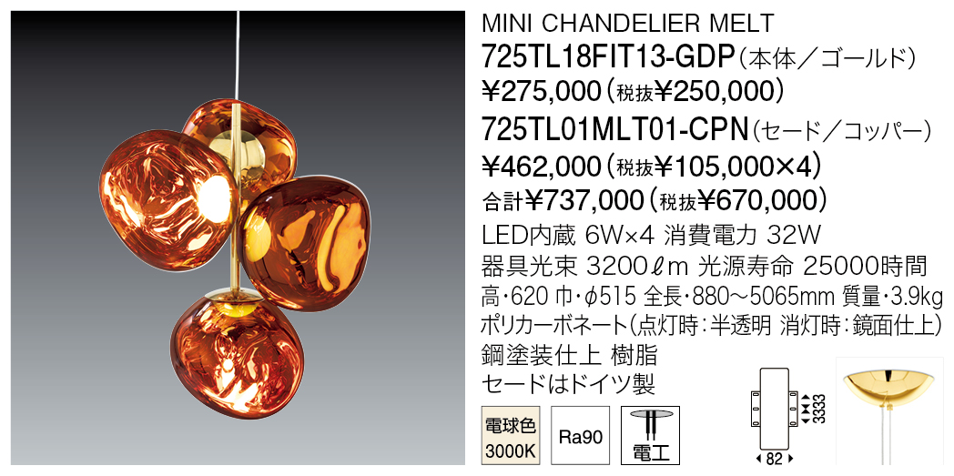 Result 検索結果 ブランド検索 TOM DIXON(トム・ディクソン/イギリス) 英国のデザイナー、トム・ディクソンによる独創的なデザインの照明、家具、ホームアクセサリーを展開するブランドです。ミラーを使った照明や、アート作品に近い斬新なプロダクツを数々発表しています。 検索結果:14件 現在選択中の条件 ブランド: TOM DIXON(トム・ディクソン/イギリス) 器具光束: 3001ℓm以上 ブランド ブランド 選択して下さい YAMAGIWA Artemide(アルテミデ/イタリア) Baccarat(バカラ/フランス) BEGA(ベガ/ドイツ) DCW éditions(DCWエディションズ/フランス) DOMUS(ドムス/ドイツ) Estiluz(エスティルース/スペイン) FLOS(フロス/イタリア) FOSCARINI(フォスカリーニ/イタリア) frosted ILTI LUCE(イルティルーチェ/イタリア) ITALAMP(イタランプ/イタリア) JAKOBSSON LAMP(ヤコブソンランプ) LEE BROOM(リー・ブルーム/イギリス) LLADRO(リヤドロ/スペイン) louis poulsen(ルイスポールセン/デンマーク) LUCEPLAN(ルーチェプラン/イタリア) Manooi(マノーイ/ハンガリー) marset(マルセット/スペイン) MOLTO LUCE(モルトルーチェ/オーストリア) NEMO(ネモ/イタリア) PRECIOSA(プレシオーサ/チェコ) TOM DIXON(トム・ディクソン/イギリス) VENINI(ヴェニーニ/イタリア) VIBIA(ヴィビア/スペイン) さらに絞り込む 商品カテゴリー 商品カテゴリー 選択して下さい インドア-シャンデリア 商品タイプ ベース デコラティブ 和風 吸音 システムライト タスクライト テーブルライト フロアライト ベースライト アジャスタブル ウォールウォッシャー アクセサリー スポットライト ペンダントライト アームライト ミュージアム メディカル 吊り下げ 直付け 防湿/防雨防湿 オプション/パーツ類 光源タイプ LED一体型 LED電球 その他 白熱球 色温度 電球色2200K 電球色2350K 電球色3500K 電球色2700K 電球色3000K 温白色3500K 白色4000K 昼白色5000K 昼光色6500K 調色 カラー その他 器具光束 選択中 500ℓm以下 501~1500ℓm 1501~3000ℓm 3001ℓm以上 演色性 Ra 90 以上 取付方法 取付簡易型 引掛シーリング ライティングダクト 工事 フランジ・直付 ジャックイン 材質 金属 樹脂 木 布 ガラス 磁器 和紙 その他 選択項目をすべて解除 TOM DIXON(トム・ディクソン/イギリス) 検索結果:14件 投稿のページ送り Prev 1 2 投稿のページ送り 1 2 表示順 : 型番順 価格が安い順 価格が高い ページ内すべてを選択 選択を解除 チェックした項目をダウンロード 全て選択 小組画像 全て選択 仕様図 全て選択 取扱説明書 全て選択 姿図1 全て選択 姿図2 全て選択 配光データ 全て選択 IESデータ 全て選択 商品画像 全て選択 3D CAD 全て選択 REVITデータ 全て選択 NEW MINI CHANDELIER MELT 725TL18FIT13-GDP+725TL01MLT01-BZN 税込 ¥737,000 (税抜 ¥670,000) 色温度 3000K 演色性 90 この製品データを全て選択 小組画像 仕様図 取扱説明書 姿図1 姿図2 配光データ IESデータ 商品画像 3D CAD REVITデータ MINI CHANDELIER MELT 725TL18FIT13-GDP+725TL01MLT01-CPN 税込 ¥737,000 (税抜 ¥670,000) 色温度 3000K 演色性 90 この製品データを全て選択 小組画像 仕様図 取扱説明書 姿図1 姿図2 配光データ IESデータ 商品画像 3D CAD REVITデータ MINI CHANDELIER MELT 725TL18FIT13-GDP+725TL01MLT01-GDN 税込 ¥737,000 (税抜 ¥670,000) 色温度 3000K 演色性 90 この製品データを全て選択 小組画像 仕様図 取扱説明書 姿図1 姿図2 配光データ IESデータ 商品画像 3D CAD REVITデータ MINI CHANDELIER MELT 725TL18FIT13-GDP+725TL01MLT01-OPN 税込 ¥627,000 (税抜 ¥570,000) 色温度 3000K 演色性 90 この製品データを全て選択 小組画像 仕様図 取扱説明書 姿図1 姿図2 配光データ IESデータ 商品画像 3D CAD REVITデータ ページ内すべてを選択 選択を解除 チェックした項目をダウンロード 投稿のページ送り Prev 1 2 投稿のページ送り 1 2 Index
