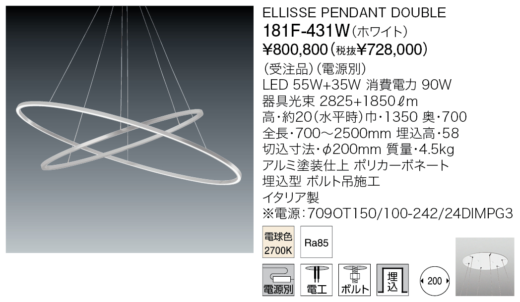 Result 検索結果 検索結果:595件 現在選択中の条件 商品カテゴリー: インドア-ペンダント 取付方法: 工事 選択して下さい さらに絞り込む 商品カテゴリー 商品カテゴリー 選択して下さい インドア-ペンダント インドア-シーリング インドア-シャンデリア インドア-ブラケット インドア-ダウンライト インドア-ベースライト インドア-間接照明 インドア-スポットライト インドア-システムライト アウトドア-屋外ダウンライト・シーリング アウトドア-屋外ブラケット アウトドア-屋外フットライト アウトドア-屋外スポットライト アウトドア-屋外地中埋設照明 アウトドア-屋外水中照明 アウトドア-屋外ボラード アウトドア-屋外ポール灯 商品タイプ ベース デコラティブ 和風 吸音 システムライト タスクライト テーブルライト フロアライト ベースライト アジャスタブル ウォールウォッシャー アクセサリー スポットライト ペンダントライト アームライト ミュージアム メディカル 吊り下げ 直付け 防湿/防雨防湿 オプション/パーツ類 光源タイプ LED一体型 LED電球 その他 白熱球 色温度 電球色2200K 電球色2350K 電球色3500K 電球色2700K 電球色3000K 温白色3500K 白色4000K 昼白色5000K 昼光色6500K 調色 カラー その他 器具光束 500ℓm以下 501~1500ℓm 1501~3000ℓm 3001ℓm以上 演色性 Ra 90 以上 リモコン・スイッチ・センサ 無線ユニット 調光・調色スイッチ付 スイッチ付 調光スイッチ付 リモコン付 タブレット別 取付方法 選択中 取付簡易型 引掛シーリング ライティングダクト 工事 フランジ・直付 ジャックイン 材質 金属 樹脂 木 布 ガラス 磁器 和紙 その他 照明データ 0 3D CADデータ IESデータ REVITデータ 配光データ 選択項目をすべて解除 検索結果:595件 投稿のページ送り Prev 1 … 20 21 22 23 24 … 60 Next 投稿のページ送り 1 … 20 21 22 23 24 … 60 表示順 : 型番順 価格が安い順 価格が高い ページ内すべてを選択 選択を解除 チェックした項目をダウンロード 全て選択 小組画像 全て選択 仕様図 全て選択 取扱説明書 全て選択 姿図1 全て選択 姿図2 全て選択 配光データ 全て選択 IESデータ 全て選択 商品画像 全て選択 3D CAD 全て選択 REVITデータ 全て選択 ELLISSE PENDANT DOUBLE 181F-431W 税込 ¥825,000 (税抜 ¥750,000) 色温度 2700K 演色性 85 この製品データを全て選択 小組画像 仕様図 取扱説明書 姿図1 姿図2 配光データ IESデータ 商品画像 3D CAD REVITデータ KEPLER 181F-432B 税込 ¥781,000 (税抜 ¥710,000) 色温度 2700K 演色性 85 この製品データを全て選択 小組画像 仕様図 取扱説明書 姿図1 姿図2 配光データ IESデータ 商品画像 3D CAD REVITデータ KEPLER 181F-432K 税込 ¥866,800 (税抜 ¥788,000) 色温度 2700K 演色性 85 この製品データを全て選択 小組画像 仕様図 取扱説明書 姿図1 姿図2 配光データ IESデータ 商品画像 3D CAD REVITデータ KEPLER 181F-432W 税込 ¥781,000 (税抜 ¥710,000) 色温度 2700K 演色性 85 この製品データを全て選択 小組画像 仕様図 取扱説明書 姿図1 姿図2 配光データ IESデータ 商品画像 3D CAD REVITデータ KEPLER MINOR 181F-433B 税込 ¥632,500 (税抜 ¥575,000) 色温度 2700K 演色性 85 この製品データを全て選択 小組画像 仕様図 取扱説明書 姿図1 姿図2 配光データ IESデータ 商品画像 3D CAD REVITデータ KEPLER MINOR 181F-433K 税込 ¥695,200 (税抜 ¥632,000) 色温度 2700K 演色性 85 この製品データを全て選択 小組画像 仕様図 取扱説明書 姿図1 姿図2 配光データ IESデータ 商品画像 3D CAD REVITデータ KEPLER MINOR 181F-433W 税込 ¥632,500 (税抜 ¥575,000) 色温度 2700K 演色性 85 この製品データを全て選択 小組画像 仕様図 取扱説明書 姿図1 姿図2 配光データ IESデータ 商品画像 3D CAD REVITデータ KEPLER PETITE 181F-434B 税込 ¥365,200 (税抜 ¥332,000) 色温度 2700K 演色性 85 この製品データを全て選択 小組画像 仕様図 取扱説明書 姿図1 姿図2 配光データ IESデータ 商品画像 3D CAD REVITデータ KEPLER PETITE 181F-434K 税込 ¥407,000 (税抜 ¥370,000) 色温度 2700K 演色性 85 この製品データを全て選択 小組画像 仕様図 取扱説明書 姿図1 姿図2 配光データ IESデータ 商品画像 3D CAD REVITデータ KEPLER PETITE 181F-434W 税込 ¥365,200 (税抜 ¥332,000) 色温度 2700K 演色性 85 この製品データを全て選択 小組画像 仕様図 取扱説明書 姿図1 姿図2 配光データ IESデータ 商品画像 3D CAD REVITデータ ページ内すべてを選択 選択を解除 チェックした項目をダウンロード 投稿のページ送り Prev 1 … 20 21 22 23 24 … 60 Next 投稿のページ送り 1 … 20 21 22 23 24 … 60 Index