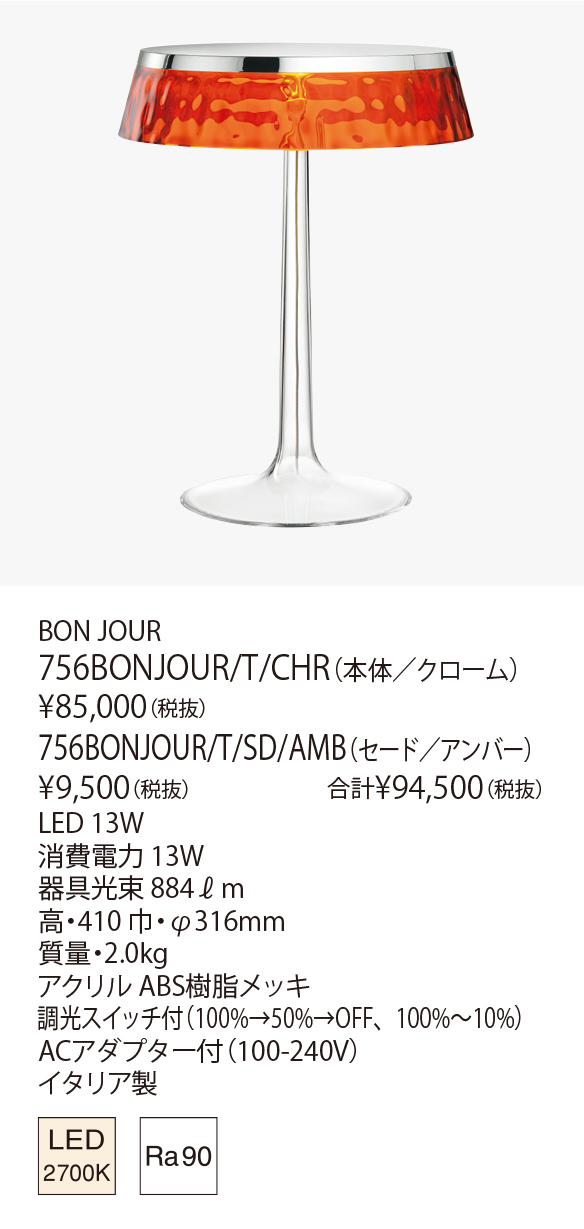 Result 検索結果 ブランド検索 FLOS(フロス/イタリア) 1962年イタリアミラノにて創設。デザイン界の巨匠アキッレ&ピエル・ジャコモカスティリオーニ兄弟をはじめ、フィリップ・スタルク、 ジャスパー・モリソンなどによる名作を、革新的な技術とともに提供し続けています。 検索結果:41件 現在選択中の条件 ブランド: FLOS(フロス/イタリア) 材質: 樹脂 ブランド ブランド 選択して下さい Davide Groppi YAMAGIWA ASTEP(アステップ/デンマーク) &tradition(アンド・トラディション/デンマーク) Artemide(アルテミデ/イタリア) BEGA(ベガ/ドイツ) FLOS(フロス/イタリア) FOSCARINI(フォスカリーニ/イタリア) frosted FRANK LLOYD WRIGHT®(フランク・ロイド・ライト) FRITZ HANSEN(フリッツ・ハンセン/デンマーク) Herman Miller(ハーマンミラー/アメリカ) INNOLUX(イノルクス/フィンランド) Karakter(カラクター/デンマーク) LEE BROOM(リー・ブルーム/イギリス) LE KLINT(レ・クリント/デンマーク) louis poulsen(ルイスポールセン/デンマーク) LUCEPLAN(ルーチェプラン/イタリア) MOLTO LUCE(モルトルーチェ/オーストリア) MUUTO(ムート/デンマーク) TOM DIXON(トム・ディクソン/イギリス) Tom Rossau(トム・ロッサウ/デンマーク) VERPAN(ヴァーパン/デンマーク) VIBIA(ヴィビア/スペイン) さらに絞り込む 商品カテゴリー 商品カテゴリー 選択して下さい インドア-ペンダント インドア-ブラケット インドア-スタンドライト アウトドア-屋外ブラケット アウトドア-屋外フットライト 商品タイプ ベース デコラティブ 和風 吸音 システムライト タスクライト テーブルライト フロアライト ベースライト アジャスタブル ウォールウォッシャー アクセサリー スポットライト ペンダントライト アームライト ミュージアム メディカル 吊り下げ 直付け 防湿/防雨防湿 オプション/パーツ類 光源タイプ LED一体型 LED電球 その他 白熱球 色温度 電球色2200K 電球色2350K 電球色3500K 電球色2700K 電球色3000K 温白色3500K 白色4000K 昼白色5000K 昼光色6500K 調色 カラー その他 器具光束 500ℓm以下 501~1500ℓm 1501~3000ℓm 3001ℓm以上 演色性 Ra 90 以上 リモコン・スイッチ・センサ 無線ユニット 調光・調色スイッチ付 スイッチ付 調光スイッチ付 リモコン付 タブレット別 取付方法 取付簡易型 引掛シーリング ライティングダクト 工事 フランジ・直付 ジャックイン 材質 選択中 金属 樹脂 木 布 ガラス 磁器 和紙 その他 選択項目をすべて解除 FLOS(フロス/イタリア) 検索結果:41件 投稿のページ送り Prev 1 2 3 4 5 Next 投稿のページ送り 1 2 3 4 5 表示順 : 型番順 価格が安い順 価格が高い ページ内すべてを選択 選択を解除 チェックした項目をダウンロード 全て選択 小組画像 全て選択 仕様図 全て選択 取扱説明書 全て選択 姿図1 全て選択 姿図2 全て選択 配光データ 全て選択 IESデータ 全て選択 商品画像 全て選択 3D CAD 全て選択 REVITデータ 全て選択 BELLHOP WALL UP 756BELLHOP/W/BLU 税込 ¥63,800 (税抜 ¥58,000) 色温度 2700K 演色性 90 この製品データを全て選択 小組画像 仕様図 取扱説明書 姿図1 姿図2 配光データ IESデータ 商品画像 3D CAD REVITデータ BELLHOP WALL UP 756BELLHOP/W/CIK 税込 ¥63,800 (税抜 ¥58,000) 色温度 2700K 演色性 90 この製品データを全て選択 小組画像 仕様図 取扱説明書 姿図1 姿図2 配光データ IESデータ 商品画像 3D CAD REVITデータ BELLHOP WALL UP 756BELLHOP/W/GRY 税込 ¥63,800 (税抜 ¥58,000) 色温度 2700K 演色性 90 この製品データを全て選択 小組画像 仕様図 取扱説明書 姿図1 姿図2 配光データ IESデータ 商品画像 3D CAD REVITデータ BELLHOP WALL UP 756BELLHOP/W/RED 税込 ¥63,800 (税抜 ¥58,000) 色温度 2700K 演色性 90 この製品データを全て選択 小組画像 仕様図 取扱説明書 姿図1 姿図2 配光データ IESデータ 商品画像 3D CAD REVITデータ BELLHOP WALL UP 756BELLHOP/W/WHI 税込 ¥63,800 (税抜 ¥58,000) 色温度 2700K 演色性 90 この製品データを全て選択 小組画像 仕様図 取扱説明書 姿図1 姿図2 配光データ IESデータ 商品画像 3D CAD REVITデータ BELLHOP WALL UP 756BELLHOP/W/YEL 税込 ¥63,800 (税抜 ¥58,000) 色温度 2700K 演色性 90 この製品データを全て選択 小組画像 仕様図 取扱説明書 姿図1 姿図2 配光データ IESデータ 商品画像 3D CAD REVITデータ BELLHOP T 756BELLHOP/WHI 税込 ¥52,800 (税抜 ¥48,000) 色温度 2700K 演色性 90 この製品データを全て選択 小組画像 仕様図 取扱説明書 姿図1 姿図2 配光データ IESデータ 商品画像 3D CAD REVITデータ BELLHOP T 756BELLHOP/YEL 税込 ¥52,800 (税抜 ¥48,000) 色温度 2700K 演色性 90 この製品データを全て選択 小組画像 仕様図 取扱説明書 姿図1 姿図2 配光データ IESデータ 商品画像 3D CAD REVITデータ BON JOUR(カタログ非掲載) 756BONJOUR/T/CHR+756BONJOUR/T/SD/AMB オープン価格 色温度 2700K 演色性 Ra 90 この製品データを全て選択 小組画像 仕様図 取扱説明書 姿図1 姿図2 配光データ IESデータ 商品画像 3D CAD REVITデータ BON JOUR(カタログ非掲載) 756BONJOUR/T/CHR+756BONJOUR/T/SD/YEL オープン価格 色温度 2700K 演色性 Ra 90 この製品データを全て選択 小組画像 仕様図 取扱説明書 姿図1 姿図2 配光データ IESデータ 商品画像 3D CAD REVITデータ ページ内すべてを選択 選択