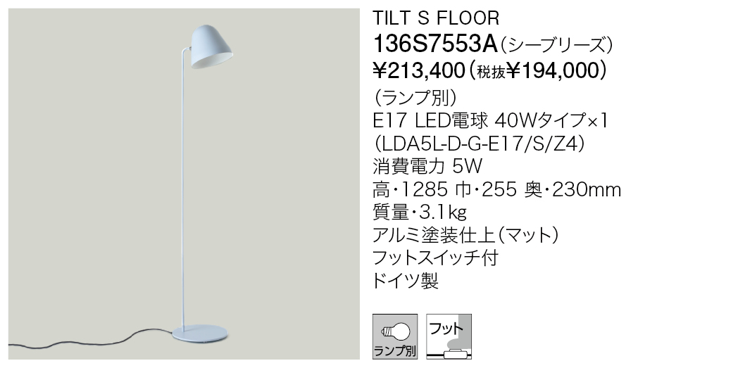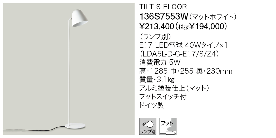 Result 検索結果 ブランド検索 NYTA(ニュイタ/ドイツ) 建築家/照明デザイナーのファビアン・マイアー、プロダクトデザイナーのヨハネス・マルモン、ヨハネス・ミュラーにより2012年に設立。ドイツやイタリアなど各国の見本市で高い評価を得、その作品は多くの賞を受賞しています。 検索結果:26件 現在選択中の条件 ブランド: NYTA(ニュイタ/ドイツ) ブランド ブランド 選択して下さい Midgard Licht New Works Davide Groppi アークテイク OSRAM YAMAGIWA ASTEP(アステップ/デンマーク) &tradition(アンド・トラディション/デンマーク) Artek(アルテック/フィンランド) Artemide(アルテミデ/イタリア) Baccarat(バカラ/フランス) B.C. SAN MICHELE(BC サン・ミッシェル/イタリア) BEGA(ベガ/ドイツ) CARPYEN(キャルピエン/スペイン) ClassiCon(クラシコン/ドイツ) DCW éditions(DCWエディションズ/フランス) designtree(デザインツリー/ニュージーランド) DOMUS(ドムス/ドイツ) Estiluz(エスティルース/スペイン) FLOS(フロス/イタリア) FOSCARINI(フォスカリーニ/イタリア) frosted FRANK LLOYD WRIGHT®(フランク・ロイド・ライト) FRITZ HANSEN(フリッツ・ハンセン/デンマーク) greenholt(グリーンホルト/デンマーク) Herman Miller(ハーマンミラー/アメリカ) HADELAND(ハーデラン/ノルウェー) hollands licht(ホランズリヒト/オランダ) HALO EDITION(ハロ・エディション/イタリア) INNOLUX(イノルクス/フィンランド) INGO MAURER(インゴ・マウラー/ドイツ) ILTI LUCE(イルティルーチェ/イタリア) ITALAMP(イタランプ/イタリア) JAKOBSSON LAMP(ヤコブソンランプ) Karakter(カラクター/デンマーク) kdln(クンダリーニ/イタリア) LaLampa(ラランパ/ラトビア) LASVIT(ラスビット/チェコ) LEE BROOM(リー・ブルーム/イギリス) LE KLINT(レ・クリント/デンマーク) LLADRO(リヤドロ/スペイン) louis poulsen(ルイスポールセン/デンマーク) LUCEPLAN(ルーチェプラン/イタリア) LZF(ルシフェル/スペイン) MADE BY HAND(メイド・バイ・ハンド/デンマーク) Manooi(マノーイ/ハンガリー) marset(マルセット/スペイン) MICHAELANASTASSIADES(マイケルアナスタシアデス/イギリス) MOLTO LUCE(モルトルーチェ/オーストリア) MUUTO(ムート/デンマーク) NEMO(ネモ/イタリア) Northern(ノーザン/ノルウェー) NYTA(ニュイタ/ドイツ) ORIGINL BTC(オリジナルBTC/イギリス) PANDUL(パンドゥル/デンマーク) PRECIOSA(プレシオーサ/チェコ) PLN GROUP(PLNグループ/ニュージーランド) Resident(レジデント/ニュージーランド) SAMMODE STUDIO(サンモードスタジオ/フランス) TECNO LUMEN(テクノルーメン/ドイツ) TOM DIXON(トム・ディクソン/イギリス) Tom Rossau(トム・ロッサウ/デンマーク) VENINI(ヴェニーニ/イタリア) VERPAN(ヴァーパン/デンマーク) VIBIA(ヴィビア/スペイン) Vitra(ヴィトラ/スイス) WÄSTBERG(ヴァストベリ/スウェーデン) さらに絞り込む 商品カテゴリー 商品カテゴリー 選択して下さい インドア-ペンダント インドア-スタンドライト 商品タイプ ベース デコラティブ 和風 吸音 システムライト タスクライト テーブルライト フロアライト ベースライト アジャスタブル ウォールウォッシャー アクセサリー スポットライト ペンダントライト アームライト ミュージアム メディカル 吊り下げ 直付け 防湿/防雨防湿 オプション/パーツ類 光源タイプ LED一体型 LED電球 その他 白熱球 色温度 電球色2200K 電球色2350K 電球色3500K 電球色2700K 電球色3000K 温白色3500K 白色4000K 昼白色5000K 昼光色6500K 調色 カラー その他 器具光束 500ℓm以下 501~1500ℓm 1501~3000ℓm 3001ℓm以上 リモコン・スイッチ・センサ 無線ユニット 調光・調色スイッチ付 スイッチ付 調光スイッチ付 リモコン付 タブレット別 取付方法 取付簡易型 引掛シーリング ライティングダクト 工事 フランジ・直付 ジャックイン 材質 金属 樹脂 木 布 ガラス 磁器 和紙 その他 取付条件 傾斜天井可 選択項目をすべて解除 NYTA(ニュイタ/ドイツ) 検索結果:26件 投稿のページ送り Prev 1 2 3 投稿のページ送り 1 2 3 表示順 : 型番順 価格が安い順 価格が高い ページ内すべてを選択 選択を解除 チェックした項目をダウンロード 全て選択 小組画像 全て選択 仕様図 全て選択 取扱説明書 全て選択 姿図1 全て選択 姿図2 全て選択 配光データ 全て選択 IESデータ 全て選択 商品画像 全て選択 3D CAD 全て選択 REVITデータ 全て選択 TILT GLOBE 136F-240G 税込 ¥83,600 (税抜 ¥76,000) この製品データを全て選択 小組画像 仕様図 取扱説明書 姿図1 姿図2 配光データ IESデータ 商品画像 3D CAD REVITデータ TILT GLOBE 136F-240W 税込 ¥83,600 (税抜 ¥76,000) この製品データを全て選択 小組画像 仕様図 取扱説明書 姿図1 姿図2 配光データ IESデータ 商品画像 3D CAD REVITデータ TILT S FLOOR 136S7553A 税込 ¥203,500 (税抜 ¥185,000) この製品データを全て選択 小組画像 仕様図 取扱説明書 姿図1 姿図2 配光データ IESデータ 商品画像 3D CAD REVITデータ TILT S FLOOR 136S7553B 税込 ¥203,500 (税抜 ¥185,000) この製品データを全て選択 小組画像 仕様図 取扱説明書 姿図1 姿図2 配光データ IESデータ 商品画像 3D CAD REVITデータ TILT S FLOOR 136S7553G 税込 ¥237,600 (税抜 ¥216,000) この製品データを全て選択 小組画像 仕様図 取扱説