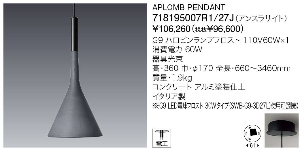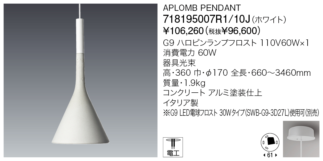 Result 検索結果 商品カテゴリー検索 ペンダント 検索結果:64件 現在選択中の条件 商品カテゴリー: インドア-ペンダント 材質: その他 商品カテゴリー 商品カテゴリー 選択して下さい インドア-ペンダント インドア-シャンデリア インドア-ブラケット インドア-スタンドライト アウトドア-屋外ボラード さらに絞り込む ブランド ブランド 選択して下さい New Works CARPYEN(キャルピエン/スペイン) FOSCARINI(フォスカリーニ/イタリア) INGO MAURER(インゴ・マウラー/ドイツ) LEE BROOM(リー・ブルーム/イギリス) LE KLINT(レ・クリント/デンマーク) MUUTO(ムート/デンマーク) TOM DIXON(トム・ディクソン/イギリス) Tom Rossau(トム・ロッサウ/デンマーク) VERPAN(ヴァーパン/デンマーク) 商品タイプ ベース デコラティブ 和風 吸音 システムライト タスクライト テーブルライト フロアライト ベースライト アジャスタブル ウォールウォッシャー アクセサリー スポットライト ペンダントライト アームライト ミュージアム メディカル 吊り下げ 直付け 防湿/防雨防湿 オプション/パーツ類 光源タイプ LED一体型 LED電球 その他 白熱球 色温度 電球色2200K 電球色2350K 電球色3500K 電球色2700K 電球色3000K 温白色3500K 白色4000K 昼白色5000K 昼光色6500K 調色 カラー その他 器具光束 500ℓm以下 501~1500ℓm 1501~3000ℓm 3001ℓm以上 演色性 Ra 90 以上 取付方法 取付簡易型 引掛シーリング ライティングダクト 工事 フランジ・直付 ジャックイン 材質 選択中 金属 樹脂 木 布 ガラス 磁器 和紙 その他 選択項目をすべて解除 ペンダント 検索結果:64件 投稿のページ送り Prev 1 2 3 4 5 … 7 Next 投稿のページ送り 1 2 3 4 5 … 7 表示順 : 型番順 価格が安い順 価格が高い ページ内すべてを選択 選択を解除 チェックした項目をダウンロード 全て選択 小組画像 全て選択 仕様図 全て選択 取扱説明書 全て選択 姿図1 全て選択 姿図2 全て選択 配光データ 全て選択 IESデータ 全て選択 商品画像 全て選択 3D CAD 全て選択 REVITデータ 全て選択 E27 LED(カタログ非掲載) 481MU/E27LED/P/TC オープン価格 色温度 2700K この製品データを全て選択 小組画像 仕様図 取扱説明書 姿図1 姿図2 配光データ IESデータ 商品画像 3D CAD REVITデータ E27 LED 481MU/E27LED/P/WH 税込 ¥37,400 (税抜 ¥34,000) この製品データを全て選択 小組画像 仕様図 取扱説明書 姿図1 姿図2 配光データ IESデータ 商品画像 3D CAD REVITデータ ZETTEL’Z A5 7181150000 税込 ¥226,160 (税抜 ¥205,600) この製品データを全て選択 小組画像 仕様図 取扱説明書 姿図1 姿図2 配光データ IESデータ 商品画像 3D CAD REVITデータ ZETTEL’Z A6 7181156000 税込 ¥221,430 (税抜 ¥201,300) この製品データを全て選択 小組画像 仕様図 取扱説明書 姿図1 姿図2 配光データ IESデータ 商品画像 3D CAD REVITデータ APLOMB PENDANT 718195007R1/10J 税込 ¥106,260 (税抜 ¥96,600) この製品データを全て選択 小組画像 仕様図 取扱説明書 姿図1 姿図2 配光データ IESデータ 商品画像 3D CAD REVITデータ APLOMB PENDANT 718195007R1/25J 税込 ¥106,260 (税抜 ¥96,600) この製品データを全て選択 小組画像 仕様図 取扱説明書 姿図1 姿図2 配光データ IESデータ 商品画像 3D CAD REVITデータ APLOMB PENDANT 718195007R1/27J 税込 ¥106,260 (税抜 ¥96,600) この製品データを全て選択 小組画像 仕様図 取扱説明書 姿図1 姿図2 配光データ IESデータ 商品画像 3D CAD REVITデータ APLOMB PENDANT 718195007R1/52J 税込 ¥106,260 (税抜 ¥96,600) この製品データを全て選択 小組画像 仕様図 取扱説明書 姿図1 姿図2 配光データ IESデータ 商品画像 3D CAD REVITデータ APLOMB PENDANT LARGE 718195017/10J 税込 ¥187,330 (税抜 ¥170,300) 色温度 2700K 演色性 90 この製品データを全て選択 小組画像 仕様図 取扱説明書 姿図1 姿図2 配光データ IESデータ 商品画像 3D CAD REVITデータ APLOMB PENDANT LARGE 718195017/25J 税込 ¥187,330 (税抜 ¥170,300) 色温度 2700K 演色性 90 この製品データを全て選択 小組画像 仕様図 取扱説明書 姿図1 姿図2 配光データ IESデータ 商品画像 3D CAD REVITデータ ページ内すべてを選択 選択を解除 チェックした項目をダウンロード 投稿のページ送り Prev 1 2 3 4 5 … 7 Next 投稿のページ送り 1 2 3 4 5 … 7 Index