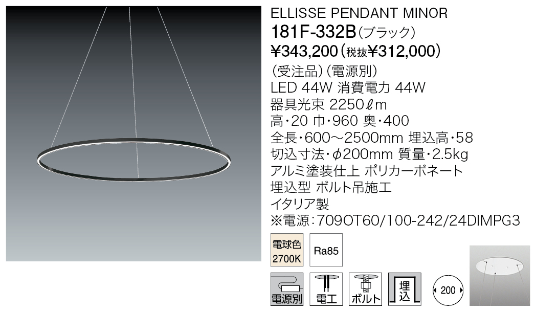 Result 検索結果 検索結果:1195件 現在選択中の条件 商品カテゴリー: インドア-ペンダント 選択して下さい さらに絞り込む 商品カテゴリー 商品カテゴリー 選択して下さい インドア-ペンダント インドア-シーリング インドア-シャンデリア インドア-ブラケット インドア-スタンドライト インドア-ダウンライト インドア-ベースライト インドア-間接照明 インドア-スポットライト インドア-システムライト アウトドア-屋外ダウンライト・シーリング アウトドア-屋外ブラケット アウトドア-屋外フットライト アウトドア-屋外スポットライト アウトドア-屋外地中埋設照明 アウトドア-屋外水中照明 アウトドア-屋外ボラード アウトドア-屋外ポール灯 商品タイプ ベース デコラティブ 和風 吸音 システムライト タスクライト テーブルライト フロアライト ベースライト アジャスタブル ウォールウォッシャー アクセサリー スポットライト ペンダントライト アームライト ミュージアム メディカル 吊り下げ 直付け 防湿/防雨防湿 オプション/パーツ類 光源タイプ LED一体型 LED電球 その他 白熱球 色温度 電球色2200K 電球色2350K 電球色3500K 電球色2700K 電球色3000K 温白色3500K 白色4000K 昼白色5000K 昼光色6500K 調色 カラー その他 器具光束 500ℓm以下 501~1500ℓm 1501~3000ℓm 3001ℓm以上 演色性 Ra 90 以上 リモコン・スイッチ・センサ 無線ユニット 調光・調色スイッチ付 スイッチ付 調光スイッチ付 リモコン付 タブレット別 取付方法 取付簡易型 引掛シーリング ライティングダクト 工事 フランジ・直付 ジャックイン 材質 金属 樹脂 木 布 ガラス 磁器 和紙 その他 取付条件 傾斜天井可 照明データ 0 3D CADデータ IESデータ REVITデータ 配光データ 選択項目をすべて解除 検索結果:1195件 投稿のページ送り Prev 1 … 31 32 33 34 35 … 120 Next 投稿のページ送り 1 … 31 32 33 34 35 … 120 表示順 : 型番順 価格が安い順 価格が高い ページ内すべてを選択 選択を解除 チェックした項目をダウンロード 全て選択 小組画像 全て選択 仕様図 全て選択 取扱説明書 全て選択 姿図1 全て選択 姿図2 全て選択 配光データ 全て選択 IESデータ 全て選択 商品画像 全て選択 3D CAD 全て選択 REVITデータ 全て選択 KEPLER MINOR 181F-329B 税込 ¥594,000 (税抜 ¥540,000) 色温度 2700K 演色性 85 この製品データを全て選択 小組画像 仕様図 取扱説明書 姿図1 姿図2 配光データ IESデータ 商品画像 3D CAD REVITデータ KEPLER MINOR 181F-329K 税込 ¥671,000 (税抜 ¥610,000) 色温度 2700K 演色性 85 この製品データを全て選択 小組画像 仕様図 取扱説明書 姿図1 姿図2 配光データ IESデータ 商品画像 3D CAD REVITデータ KEPLER MINOR 181F-329W 税込 ¥594,000 (税抜 ¥540,000) 色温度 2700K 演色性 85 この製品データを全て選択 小組画像 仕様図 取扱説明書 姿図1 姿図2 配光データ IESデータ 商品画像 3D CAD REVITデータ ELLISSE PENDANT TRIPLE 181F-330B 税込 ¥1,155,000 (税抜 ¥1,050,000) 色温度 2700K 演色性 85 この製品データを全て選択 小組画像 仕様図 取扱説明書 姿図1 姿図2 配光データ IESデータ 商品画像 3D CAD REVITデータ ELLISSE PENDANT TRIPLE 181F-330U 税込 ¥1,430,000 (税抜 ¥1,300,000) 色温度 2700K 演色性 85 この製品データを全て選択 小組画像 仕様図 取扱説明書 姿図1 姿図2 配光データ IESデータ 商品画像 3D CAD REVITデータ ELLISSE PENDANT TRIPLE 181F-330W 税込 ¥1,155,000 (税抜 ¥1,050,000) 色温度 2700K 演色性 85 この製品データを全て選択 小組画像 仕様図 取扱説明書 姿図1 姿図2 配光データ IESデータ 商品画像 3D CAD REVITデータ ELLISSE PENDANT MAJOR(カタログ非掲載) 181F-331B オープン価格 色温度 2700K 演色性 Ra 85 この製品データを全て選択 小組画像 仕様図 取扱説明書 姿図1 姿図2 配光データ IESデータ 商品画像 3D CAD REVITデータ ELLISSE PENDANT MAJOR(カタログ非掲載) 181F-331U オープン価格 色温度 2700K 演色性 Ra 85 この製品データを全て選択 小組画像 仕様図 取扱説明書 姿図1 姿図2 配光データ IESデータ 商品画像 3D CAD REVITデータ ELLISSE PENDANT MAJOR(カタログ非掲載) 181F-331W オープン価格 色温度 2700K 演色性 Ra 85 この製品データを全て選択 小組画像 仕様図 取扱説明書 姿図1 姿図2 配光データ IESデータ 商品画像 3D CAD REVITデータ ELLISSE PENDANT MINOR 181F-332B 税込 ¥354,200 (税抜 ¥322,000) 色温度 2700K 演色性 85 この製品データを全て選択 小組画像 仕様図 取扱説明書 姿図1 姿図2 配光データ IESデータ 商品画像 3D CAD REVITデータ ページ内すべてを選択 選択を解除 チェックした項目をダウンロード 投稿のページ送り Prev 1 … 31 32 33 34 35 … 120 Next 投稿のページ送り 1 … 31 32 33 34 35 … 120 Index