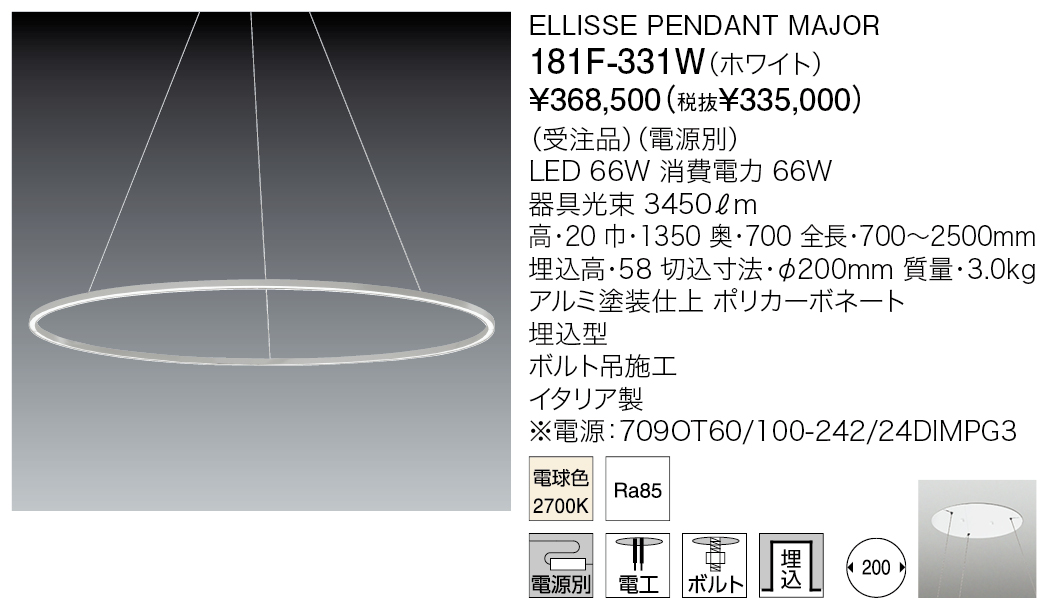 Result 検索結果 商品カテゴリー検索 ペンダント 検索結果:1195件 現在選択中の条件 商品カテゴリー: インドア-ペンダント 商品カテゴリー 商品カテゴリー 選択して下さい インドア-ペンダント インドア-シーリング インドア-シャンデリア インドア-ブラケット インドア-スタンドライト インドア-ダウンライト インドア-ベースライト インドア-間接照明 インドア-スポットライト インドア-システムライト アウトドア-屋外ダウンライト・シーリング アウトドア-屋外ブラケット アウトドア-屋外フットライト アウトドア-屋外スポットライト アウトドア-屋外地中埋設照明 アウトドア-屋外水中照明 アウトドア-屋外ボラード アウトドア-屋外ポール灯 さらに絞り込む ブランド ブランド 選択して下さい New Works Davide Groppi アークテイク OSRAM YAMAGIWA ASTEP(アステップ/デンマーク) &tradition(アンド・トラディション/デンマーク) Artek(アルテック/フィンランド) Artemide(アルテミデ/イタリア) Baccarat(バカラ/フランス) CARPYEN(キャルピエン/スペイン) ClassiCon(クラシコン/ドイツ) DCW éditions(DCWエディションズ/フランス) designtree(デザインツリー/ニュージーランド) DOMUS(ドムス/ドイツ) Estiluz(エスティルース/スペイン) FLOS(フロス/イタリア) FOSCARINI(フォスカリーニ/イタリア) FRANK LLOYD WRIGHT®(フランク・ロイド・ライト) FRITZ HANSEN(フリッツ・ハンセン/デンマーク) greenholt(グリーンホルト/デンマーク) Herman Miller(ハーマンミラー/アメリカ) HADELAND(ハーデラン/ノルウェー) hollands licht(ホランズリヒト/オランダ) INNOLUX(イノルクス/フィンランド) INGO MAURER(インゴ・マウラー/ドイツ) ILTI LUCE(イルティルーチェ/イタリア) JAKOBSSON LAMP(ヤコブソンランプ) LASVIT(ラスビット/チェコ) LEE BROOM(リー・ブルーム/イギリス) LE KLINT(レ・クリント/デンマーク) LLADRO(リヤドロ/スペイン) LUCEPLAN(ルーチェプラン/イタリア) LZF(ルシフェル/スペイン) MADE BY HAND(メイド・バイ・ハンド/デンマーク) marset(マルセット/スペイン) MICHAELANASTASSIADES(マイケルアナスタシアデス/イギリス) MOLTO LUCE(モルトルーチェ/オーストリア) MUUTO(ムート/デンマーク) NEMO(ネモ/イタリア) Northern(ノーザン/ノルウェー) NYTA(ニュイタ/ドイツ) ORIGINL BTC(オリジナルBTC/イギリス) PANDUL(パンドゥル/デンマーク) PLN GROUP(PLNグループ/ニュージーランド) Resident(レジデント/ニュージーランド) TOM DIXON(トム・ディクソン/イギリス) Tom Rossau(トム・ロッサウ/デンマーク) VENINI(ヴェニーニ/イタリア) VERPAN(ヴァーパン/デンマーク) VIBIA(ヴィビア/スペイン) WÄSTBERG(ヴァストベリ/スウェーデン) 商品タイプ ベース デコラティブ 和風 吸音 システムライト タスクライト テーブルライト フロアライト ベースライト アジャスタブル ウォールウォッシャー アクセサリー スポットライト ペンダントライト アームライト ミュージアム メディカル 吊り下げ 直付け 防湿/防雨防湿 オプション/パーツ類 光源タイプ LED一体型 LED電球 その他 白熱球 色温度 電球色2200K 電球色2350K 電球色3500K 電球色2700K 電球色3000K 温白色3500K 白色4000K 昼白色5000K 昼光色6500K 調色 カラー その他 器具光束 500ℓm以下 501~1500ℓm 1501~3000ℓm 3001ℓm以上 演色性 Ra 90 以上 リモコン・スイッチ・センサ 無線ユニット 調光・調色スイッチ付 スイッチ付 調光スイッチ付 リモコン付 タブレット別 取付方法 取付簡易型 引掛シーリング ライティングダクト 工事 フランジ・直付 ジャックイン 材質 金属 樹脂 木 布 ガラス 磁器 和紙 その他 取付条件 傾斜天井可 照明データ 0 3D CADデータ IESデータ REVITデータ 配光データ 選択項目をすべて解除 ペンダント 検索結果:1195件 投稿のページ送り Prev 1 … 31 32 33 34 35 … 120 Next 投稿のページ送り 1 … 31 32 33 34 35 … 120 表示順 : 型番順 価格が安い順 価格が高い ページ内すべてを選択 選択を解除 チェックした項目をダウンロード 全て選択 小組画像 全て選択 仕様図 全て選択 取扱説明書 全て選択 姿図1 全て選択 姿図2 全て選択 配光データ 全て選択 IESデータ 全て選択 商品画像 全て選択 3D CAD 全て選択 REVITデータ 全て選択 KEPLER MINOR 181F-329B 税込 ¥594,000 (税抜 ¥540,000) 色温度 2700K 演色性 85 この製品データを全て選択 小組画像 仕様図 取扱説明書 姿図1 姿図2 配光データ IESデータ 商品画像 3D CAD REVITデータ KEPLER MINOR 181F-329K 税込 ¥671,000 (税抜 ¥610,000) 色温度 2700K 演色性 85 この製品データを全て選択 小組画像 仕様図 取扱説明書 姿図1 姿図2 配光データ IESデータ 商品画像 3D CAD REVITデータ KEPLER MINOR 181F-329W 税込 ¥594,000 (税抜 ¥540,000) 色温度 2700K 演色性 85 この製品データを全て選択 小組画像 仕様図 取扱説明書 姿図1 姿図2 配光データ IESデータ 商品画像 3D CAD REVITデータ ELLISSE PENDANT TRIPLE 181F-330B 税込 ¥1,155,000 (税抜 ¥1,050,000) 色温度 2700K 演色性 85 この製品データを全て選択 小組画像 仕様図 取扱説明書 姿図1 姿図2 配光データ IESデータ 商品画像 3D CAD REVITデータ ELLISSE PENDANT TRIPLE 181F-330U 税込 ¥1,430,000 (税抜 ¥1,300,000) 色温度 2700K 演色性 85 この製品データを全て選択 小組画像 