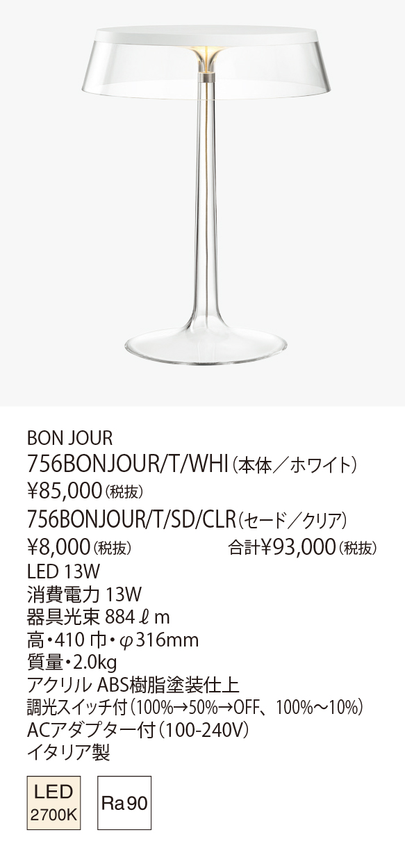 Result 検索結果 ブランド検索 FLOS(フロス/イタリア) 1962年イタリアミラノにて創設。デザイン界の巨匠アキッレ&ピエル・ジャコモカスティリオーニ兄弟をはじめ、フィリップ・スタルク、 ジャスパー・モリソンなどによる名作を、革新的な技術とともに提供し続けています。 検索結果:41件 現在選択中の条件 ブランド: FLOS(フロス/イタリア) 材質: 樹脂 ブランド ブランド 選択して下さい Davide Groppi YAMAGIWA ASTEP(アステップ/デンマーク) &tradition(アンド・トラディション/デンマーク) Artemide(アルテミデ/イタリア) BEGA(ベガ/ドイツ) FLOS(フロス/イタリア) FOSCARINI(フォスカリーニ/イタリア) frosted FRANK LLOYD WRIGHT®(フランク・ロイド・ライト) FRITZ HANSEN(フリッツ・ハンセン/デンマーク) Herman Miller(ハーマンミラー/アメリカ) INNOLUX(イノルクス/フィンランド) Karakter(カラクター/デンマーク) LEE BROOM(リー・ブルーム/イギリス) LE KLINT(レ・クリント/デンマーク) louis poulsen(ルイスポールセン/デンマーク) LUCEPLAN(ルーチェプラン/イタリア) MOLTO LUCE(モルトルーチェ/オーストリア) MUUTO(ムート/デンマーク) TOM DIXON(トム・ディクソン/イギリス) Tom Rossau(トム・ロッサウ/デンマーク) VERPAN(ヴァーパン/デンマーク) VIBIA(ヴィビア/スペイン) さらに絞り込む 商品カテゴリー 商品カテゴリー 選択して下さい インドア-ペンダント インドア-ブラケット インドア-スタンドライト アウトドア-屋外ブラケット アウトドア-屋外フットライト 商品タイプ ベース デコラティブ 和風 吸音 システムライト タスクライト テーブルライト フロアライト ベースライト アジャスタブル ウォールウォッシャー アクセサリー スポットライト ペンダントライト アームライト ミュージアム メディカル 吊り下げ 直付け 防湿/防雨防湿 オプション/パーツ類 光源タイプ LED一体型 LED電球 その他 白熱球 色温度 電球色2200K 電球色2350K 電球色3500K 電球色2700K 電球色3000K 温白色3500K 白色4000K 昼白色5000K 昼光色6500K 調色 カラー その他 器具光束 500ℓm以下 501~1500ℓm 1501~3000ℓm 3001ℓm以上 演色性 Ra 90 以上 リモコン・スイッチ・センサ 無線ユニット 調光・調色スイッチ付 スイッチ付 調光スイッチ付 リモコン付 タブレット別 取付方法 取付簡易型 引掛シーリング ライティングダクト 工事 フランジ・直付 ジャックイン 材質 選択中 金属 樹脂 木 布 ガラス 磁器 和紙 その他 選択項目をすべて解除 FLOS(フロス/イタリア) 検索結果:41件 投稿のページ送り Prev 1 2 3 4 5 Next 投稿のページ送り 1 2 3 4 5 表示順 : 型番順 価格が安い順 価格が高い ページ内すべてを選択 選択を解除 チェックした項目をダウンロード 全て選択 小組画像 全て選択 仕様図 全て選択 取扱説明書 全て選択 姿図1 全て選択 姿図2 全て選択 配光データ 全て選択 IESデータ 全て選択 商品画像 全て選択 3D CAD 全て選択 REVITデータ 全て選択 BON JOUR(カタログ非掲載) 756BONJOUR/T/COP+756BONJOUR/T/SD/SMG オープン価格 色温度 2700K 演色性 Ra 90 この製品データを全て選択 小組画像 仕様図 取扱説明書 姿図1 姿図2 配光データ IESデータ 商品画像 3D CAD REVITデータ BON JOUR(カタログ非掲載) 756BONJOUR/T/COP+756BONJOUR/T/SD/SOFT オープン価格 色温度 2700K 演色性 Ra 90 この製品データを全て選択 小組画像 仕様図 取扱説明書 姿図1 姿図2 配光データ IESデータ 商品画像 3D CAD REVITデータ BON JOUR(カタログ非掲載) 756BONJOUR/T/MCR+756BONJOUR/T/SD/SOFT オープン価格 色温度 2700K 演色性 Ra 90 この製品データを全て選択 小組画像 仕様図 取扱説明書 姿図1 姿図2 配光データ IESデータ 商品画像 3D CAD REVITデータ BON JOUR(カタログ非掲載) 756BONJOUR/T/WHI+756BONJOUR/T/SD/CLR オープン価格 色温度 2700K 演色性 Ra 90 この製品データを全て選択 小組画像 仕様図 取扱説明書 姿図1 姿図2 配光データ IESデータ 商品画像 3D CAD REVITデータ K TRIBE S2 (カタログ非掲載) 756KTRIBE/S2/CLR オープン価格 色温度 2700K この製品データを全て選択 小組画像 仕様図 取扱説明書 姿図1 姿図2 配光データ IESデータ 商品画像 3D CAD REVITデータ K TRIBE S2 (カタログ非掲載) 756KTRIBE/S2/SMG オープン価格 色温度 2700K この製品データを全て選択 小組画像 仕様図 取扱説明書 姿図1 姿図2 配光データ IESデータ 商品画像 3D CAD REVITデータ MAYDAY 756MAYDAY/BLK 税込 ¥28,600 (税抜 ¥26,000) この製品データを全て選択 小組画像 仕様図 取扱説明書 姿図1 姿図2 配光データ IESデータ 商品画像 3D CAD REVITデータ MAYDAY 756MAYDAY/ORG 税込 ¥28,600 (税抜 ¥26,000) この製品データを全て選択 小組画像 仕様図 取扱説明書 姿図1 姿図2 配光データ IESデータ 商品画像 3D CAD REVITデータ MAYDAY 756MAYDAY/WHI 税込 ¥30,800 (税抜 ¥28,000) この製品データを全て選択 小組画像 仕様図 取扱説明書 姿図1 姿図2 配光データ IESデータ 商品画像 3D CAD REVITデータ MISS K SOFT (カタログ非掲載) 756MISS/K/T/SOFT オープン価格 色温度 2700K この製品データを全て選択 小組画像 仕様図 取扱説明書 姿図1 姿図2 配光データ IESデータ 商品画像 3D CAD REVITデータ ページ内すべてを選択 選択を解除 チェックした項目をダウンロード 投稿のページ送り Pre