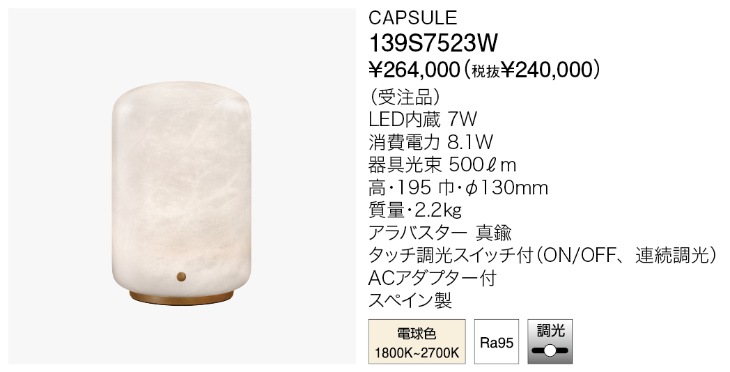 Result 検索結果 商品カテゴリー検索 スタンドライト 検索結果:605件 現在選択中の条件 商品カテゴリー: インドア-スタンドライト 商品カテゴリー 商品カテゴリー 選択して下さい インドア-ペンダント インドア-シーリング インドア-シャンデリア インドア-ブラケット インドア-スタンドライト インドア-ダウンライト インドア-ベースライト インドア-間接照明 インドア-スポットライト インドア-システムライト アウトドア-屋外ダウンライト・シーリング アウトドア-屋外ブラケット アウトドア-屋外フットライト アウトドア-屋外スポットライト アウトドア-屋外地中埋設照明 アウトドア-屋外水中照明 アウトドア-屋外ボラード アウトドア-屋外ポール灯 さらに絞り込む ブランド ブランド 選択して下さい Midgard Licht New Works Davide Groppi YAMAGIWA ASTEP(アステップ/デンマーク) &tradition(アンド・トラディション/デンマーク) Artek(アルテック/フィンランド) Artemide(アルテミデ/イタリア) Baccarat(バカラ/フランス) CARPYEN(キャルピエン/スペイン) DCW éditions(DCWエディションズ/フランス) DOMUS(ドムス/ドイツ) Estiluz(エスティルース/スペイン) FLOS(フロス/イタリア) FOSCARINI(フォスカリーニ/イタリア) FRANK LLOYD WRIGHT®(フランク・ロイド・ライト) FRITZ HANSEN(フリッツ・ハンセン/デンマーク) greenholt(グリーンホルト/デンマーク) Herman Miller(ハーマンミラー/アメリカ) HALO EDITION(ハロ・エディション/イタリア) INGO MAURER(インゴ・マウラー/ドイツ) JAKOBSSON LAMP(ヤコブソンランプ) Karakter(カラクター/デンマーク) kdln(クンダリーニ/イタリア) LASVIT(ラスビット/チェコ) LE KLINT(レ・クリント/デンマーク) LLADRO(リヤドロ/スペイン) LUCEPLAN(ルーチェプラン/イタリア) LZF(ルシフェル/スペイン) marset(マルセット/スペイン) MICHAELANASTASSIADES(マイケルアナスタシアデス/イギリス) MOLTO LUCE(モルトルーチェ/オーストリア) MUUTO(ムート/デンマーク) NEMO(ネモ/イタリア) Northern(ノーザン/ノルウェー) NYTA(ニュイタ/ドイツ) SAMMODE STUDIO(サンモードスタジオ/フランス) TECNO LUMEN(テクノルーメン/ドイツ) TOM DIXON(トム・ディクソン/イギリス) VENINI(ヴェニーニ/イタリア) VERPAN(ヴァーパン/デンマーク) VIBIA(ヴィビア/スペイン) Vitra(ヴィトラ/スイス) WÄSTBERG(ヴァストベリ/スウェーデン) 商品タイプ ベース デコラティブ 和風 吸音 システムライト タスクライト テーブルライト フロアライト ベースライト アジャスタブル ウォールウォッシャー アクセサリー スポットライト ペンダントライト アームライト ミュージアム メディカル 吊り下げ 直付け 防湿/防雨防湿 オプション/パーツ類 光源タイプ LED一体型 LED電球 その他 白熱球 色温度 電球色2200K 電球色2350K 電球色3500K 電球色2700K 電球色3000K 温白色3500K 白色4000K 昼白色5000K 昼光色6500K 調色 カラー その他 器具光束 500ℓm以下 501~1500ℓm 1501~3000ℓm 3001ℓm以上 演色性 Ra 90 以上 リモコン・スイッチ・センサ 無線ユニット 調光・調色スイッチ付 スイッチ付 調光スイッチ付 リモコン付 タブレット別 取付方法 取付簡易型 引掛シーリング ライティングダクト 工事 フランジ・直付 ジャックイン 材質 金属 樹脂 木 布 ガラス 磁器 和紙 その他 照明データ 0 3D CADデータ IESデータ REVITデータ 配光データ 選択項目をすべて解除 スタンドライト 検索結果:605件 投稿のページ送り Prev 1 … 5 6 7 8 9 … 61 Next 投稿のページ送り 1 … 5 6 7 8 9 … 61 表示順 : 型番順 価格が安い順 価格が高い ページ内すべてを選択 選択を解除 チェックした項目をダウンロード 全て選択 小組画像 全て選択 仕様図 全て選択 取扱説明書 全て選択 姿図1 全て選択 姿図2 全て選択 配光データ 全て選択 IESデータ 全て選択 商品画像 全て選択 3D CAD 全て選択 REVITデータ 全て選択 NEW FRAGILE 138S7581T 税込 ¥399,300 (税抜 ¥363,000) 色温度 2200K 演色性 80 この製品データを全て選択 小組画像 仕様図 取扱説明書 姿図1 姿図2 配光データ IESデータ 商品画像 3D CAD REVITデータ NEW DIPPING LIGHT S 138S7582L 税込 ¥344,300 (税抜 ¥313,000) 色温度 2700K 演色性 90 この製品データを全て選択 小組画像 仕様図 取扱説明書 姿図1 姿図2 配光データ IESデータ 商品画像 3D CAD REVITデータ NEW DIPPING LIGHT S 138S7582M 税込 ¥344,300 (税抜 ¥313,000) 色温度 2700K 演色性 90 この製品データを全て選択 小組画像 仕様図 取扱説明書 姿図1 姿図2 配光データ IESデータ 商品画像 3D CAD REVITデータ NEW DIPPING LIGHT S 138S7582T 税込 ¥344,300 (税抜 ¥313,000) 色温度 2700K 演色性 90 この製品データを全て選択 小組画像 仕様図 取扱説明書 姿図1 姿図2 配光データ IESデータ 商品画像 3D CAD REVITデータ NEW DIPPING LIGHT S 138S7582W 税込 ¥344,300 (税抜 ¥313,000) 色温度 2700K 演色性 90 この製品データを全て選択 小組画像 仕様図 取扱説明書 姿図1 姿図2 配光データ IESデータ 商品画像 3D CAD REVITデータ CAPSULE 139S7521W 税込 ¥321,200 (税抜 ¥292,000) 色温度 調色 演色性 95 この製品データを全て選択 小組画像 仕様図 取扱説明書 姿図1 姿図2 配光データ IESデータ 商品画像 3D CAD REVITデータ CAPSULE 139S7522W 税込 ¥291,500 (税抜 ¥265,000