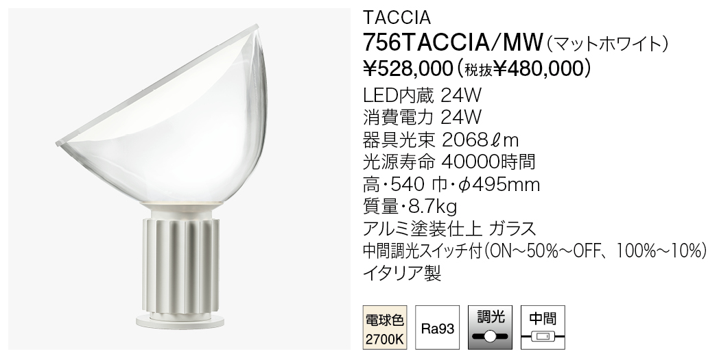 Result 検索結果 ブランド検索 FLOS(フロス/イタリア) 1962年イタリアミラノにて創設。デザイン界の巨匠アキッレ&ピエル・ジャコモカスティリオーニ兄弟をはじめ、フィリップ・スタルク、 ジャスパー・モリソンなどによる名作を、革新的な技術とともに提供し続けています。 検索結果:79件 現在選択中の条件 ブランド: FLOS(フロス/イタリア) 材質: ガラス ブランド ブランド 選択して下さい YAMAGIWA ASTEP(アステップ/デンマーク) &tradition(アンド・トラディション/デンマーク) Artek(アルテック/フィンランド) Artemide(アルテミデ/イタリア) Baccarat(バカラ/フランス) B.C. SAN MICHELE(BC サン・ミッシェル/イタリア) BEGA(ベガ/ドイツ) ClassiCon(クラシコン/ドイツ) DCW éditions(DCWエディションズ/フランス) FLOS(フロス/イタリア) FOSCARINI(フォスカリーニ/イタリア) FRITZ HANSEN(フリッツ・ハンセン/デンマーク) greenholt(グリーンホルト/デンマーク) HADELAND(ハーデラン/ノルウェー) INNOLUX(イノルクス/フィンランド) ITALAMP(イタランプ/イタリア) kdln(クンダリーニ/イタリア) LASVIT(ラスビット/チェコ) LEE BROOM(リー・ブルーム/イギリス) LUCEPLAN(ルーチェプラン/イタリア) MADE BY HAND(メイド・バイ・ハンド/デンマーク) Manooi(マノーイ/ハンガリー) marset(マルセット/スペイン) MICHAELANASTASSIADES(マイケルアナスタシアデス/イギリス) MUUTO(ムート/デンマーク) NEMO(ネモ/イタリア) Northern(ノーザン/ノルウェー) ORIGINL BTC(オリジナルBTC/イギリス) PRECIOSA(プレシオーサ/チェコ) Resident(レジデント/ニュージーランド) TECNO LUMEN(テクノルーメン/ドイツ) TOM DIXON(トム・ディクソン/イギリス) VENINI(ヴェニーニ/イタリア) VERPAN(ヴァーパン/デンマーク) VIBIA(ヴィビア/スペイン) WÄSTBERG(ヴァストベリ/スウェーデン) さらに絞り込む 商品カテゴリー 商品カテゴリー 選択して下さい インドア-ペンダント インドア-シーリング インドア-ブラケット インドア-スタンドライト インドア-システムライト アウトドア-屋外ブラケット 商品タイプ ベース デコラティブ 和風 吸音 システムライト タスクライト テーブルライト フロアライト ベースライト アジャスタブル ウォールウォッシャー アクセサリー スポットライト ペンダントライト アームライト ミュージアム メディカル 吊り下げ 直付け 防湿/防雨防湿 オプション/パーツ類 光源タイプ LED一体型 LED電球 その他 白熱球 色温度 電球色2200K 電球色2350K 電球色3500K 電球色2700K 電球色3000K 温白色3500K 白色4000K 昼白色5000K 昼光色6500K 調色 カラー その他 器具光束 500ℓm以下 501~1500ℓm 1501~3000ℓm 3001ℓm以上 演色性 Ra 90 以上 リモコン・スイッチ・センサ 無線ユニット 調光・調色スイッチ付 スイッチ付 調光スイッチ付 リモコン付 タブレット別 取付方法 取付簡易型 引掛シーリング ライティングダクト 工事 フランジ・直付 ジャックイン 材質 選択中 金属 樹脂 木 布 ガラス 磁器 和紙 その他 照明データ 0 3D CADデータ IESデータ REVITデータ 配光データ 選択項目をすべて解除 FLOS(フロス/イタリア) 検索結果:79件 投稿のページ送り Prev 1 … 6 7 8 投稿のページ送り 1 … 6 7 8 表示順 : 型番順 価格が安い順 価格が高い ページ内すべてを選択 選択を解除 チェックした項目をダウンロード 全て選択 小組画像 全て選択 仕様図 全て選択 取扱説明書 全て選択 姿図1 全て選択 姿図2 全て選択 配光データ 全て選択 IESデータ 全て選択 商品画像 全て選択 3D CAD 全て選択 REVITデータ 全て選択 NOCTAMBULE S4 HIGH CYLINDERS(カタログ非掲載) 756NOCTAMBULE/S4/H/C オープン価格 色温度 2700K 演色性 Ra 90 この製品データを全て選択 小組画像 仕様図 取扱説明書 姿図1 姿図2 配光データ IESデータ 商品画像 3D CAD REVITデータ NOCTAMBULE S4 LOW CYLINDERS(カタログ非掲載) 756NOCTAMBULE/S4/L/C オープン価格 色温度 2700K 演色性 Ra 90 この製品データを全て選択 小組画像 仕様図 取扱説明書 姿図1 姿図2 配光データ IESデータ 商品画像 3D CAD REVITデータ NEW TACCIA 756TACCIA/MW 税込 ¥528,000 (税抜 ¥480,000) 色温度 2700K 演色性 93 この製品データを全て選択 小組画像 仕様図 取扱説明書 姿図1 姿図2 配光データ IESデータ 商品画像 3D CAD REVITデータ NEW TACCIA SMALL 756TACCIA/S/MW 税込 ¥198,000 (税抜 ¥180,000) 色温度 2700K 演色性 92 この製品データを全て選択 小組画像 仕様図 取扱説明書 姿図1 姿図2 配光データ IESデータ 商品画像 3D CAD REVITデータ TARAXACUM 88 C/W 756TARAXACUM88/C/W/LED 税込 ¥396,000 (税抜 ¥360,000) この製品データを全て選択 小組画像 仕様図 取扱説明書 姿図1 姿図2 配光データ IESデータ 商品画像 3D CAD REVITデータ TARAXACUM 88 S(カタログ非掲載) 756TARAXACUM88/S/LED オープン価格 色温度 2700K この製品データを全て選択 小組画像 仕様図 取扱説明書 姿図1 姿図2 配光データ IESデータ 商品画像 3D CAD REVITデータ TO-TIE T1(カタログ非掲載) 756TOTIE/T1/BLK オープン価格 色温度 2700K 演色性 90 この製品データを全て選択 小組画像 仕様図 取扱説明書 姿図1 姿図2 配光データ IESデータ 商品画像 3D CAD REVITデータ TO-TIE T2(カタログ非掲載) 756TOTIE/T2/BLK オープン価格 色温度 2700K 演色性 90 この製品