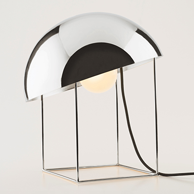 ココは、ミニマルなフォルムの彫刻的なテーブルランプ。半円体のシェードは角度を変更可能で、自由に光の向きを変えられます。カラーはブラック、クローム、ゴールドから選択可能。シェード内面には箔が施され、やわらかくニュアンスのある光が拡がります。