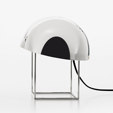 ココは、ミニマルなフォルムの彫刻的なテーブルランプ。半円体のシェードは角度を変更可能で、自由に光の向きを変えられます。カラーはブラック、クローム、ゴールドから選択可能。シェード内面には箔が施され、やわらかくニュアンスのある光が拡がります。