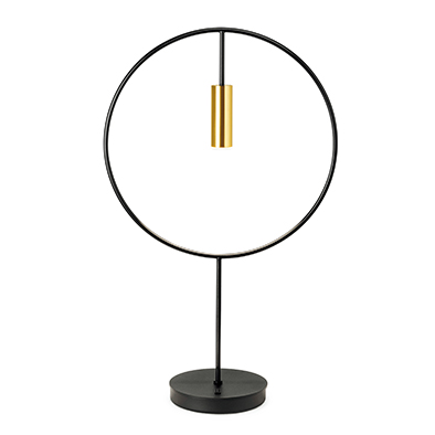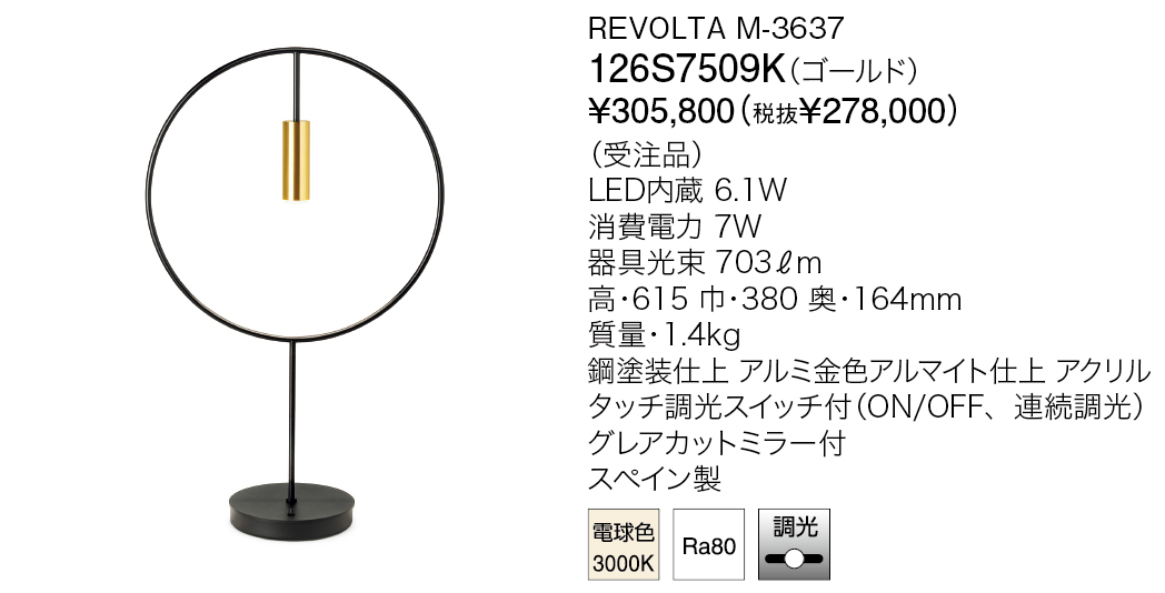 トレンド感のあるミニマルな幾何学フォルムをベースとしたLEDテーブルランプ、レヴォルタ。レトロ&モダンなアート作品のような佇まいで、空間を引き締めます。