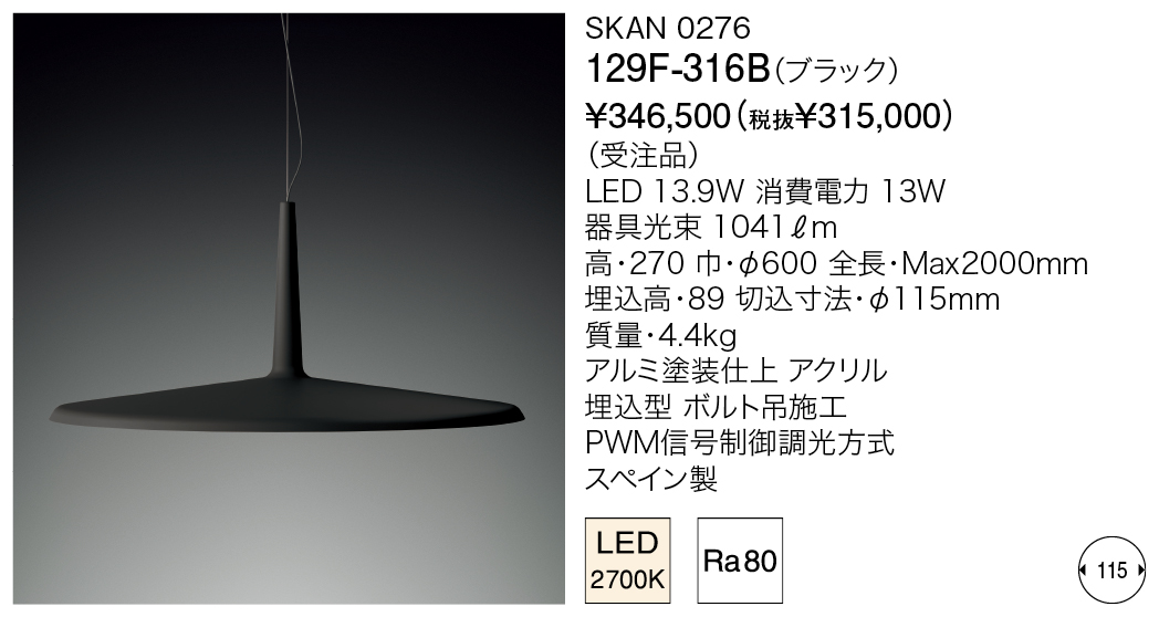 スカンは、ミニマルかつフューチャリスティックなデザインが印象的なペンダント。無機質で均斉の取れたプロポーションと存在感はモダン、コンテンポラリースタイルの空間にマッチします。ディフューザー下のLED光源から放たれる光はダイニング照明にも適しています。