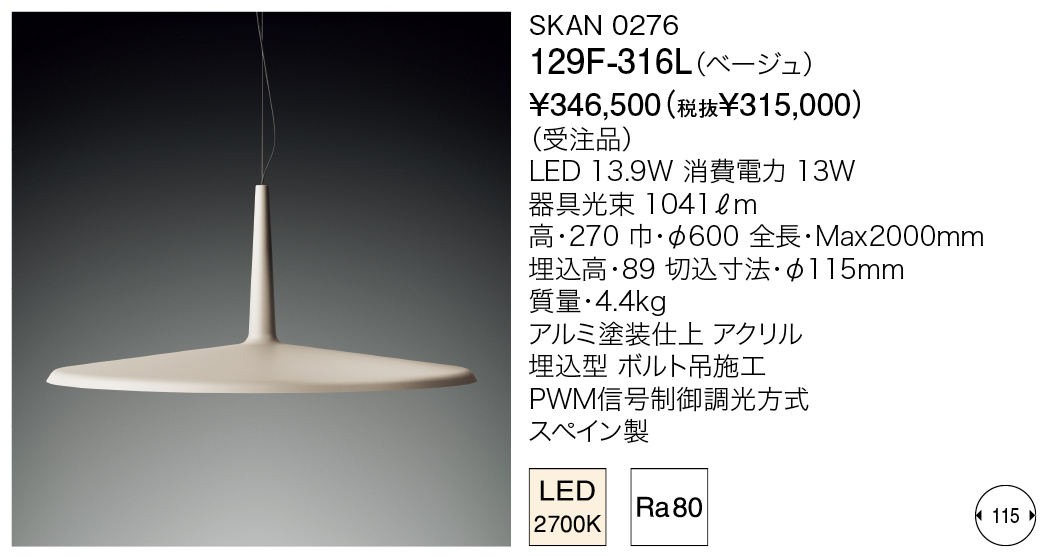 スカンは、ミニマルかつフューチャリスティックなデザインが印象的なペンダント。無機質で均斉の取れたプロポーションと存在感はモダン、コンテンポラリースタイルの空間にマッチします。ディフューザー下のLED光源から放たれる光はダイニング照明にも適しています。