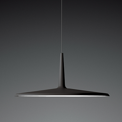 スカンは、ミニマルかつフューチャリスティックなデザインが印象的なペンダント。無機質で均斉の取れたプロポーションと存在感はモダン、コンテンポラリースタイルの空間にマッチします。ディフューザー下のLED光源から放たれる光はダイニング照明にも適しています。