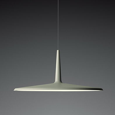 スカンは、ミニマルかつフューチャリスティックなデザインが印象的なペンダント。無機質で均斉の取れたプロポーションと存在感はモダン、コンテンポラリースタイルの空間にマッチします。ディフューザー下のLED光源から放たれる光はダイニング照明にも適しています。