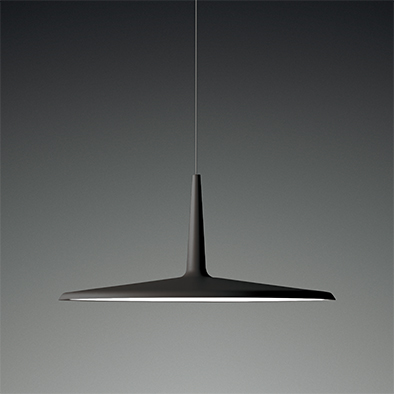 スカンは、ミニマルかつフューチャリスティックなデザインが印象的なペンダント。無機質で均斉の取れたプロポーションと存在感はモダン、コンテンポラリースタイルの空間にマッチします。ディフューザー下のLED光源から放たれる光はダイニング照明にも適しています。
