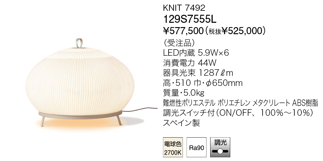 - 調光スイッチ付(ON/OFF、100%~10%)