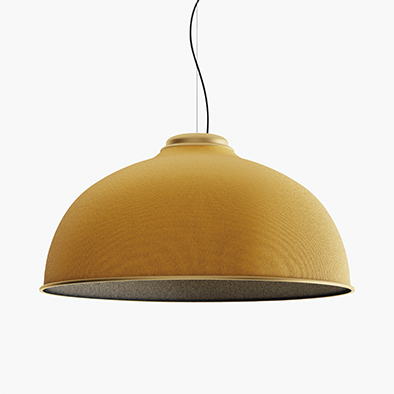 アイコニックなドーム型ペンダントのファレル。ファブリック×メタルの組み合わせで構成され、落ち着いたグレー色をはじめ多彩なカラーラインナップにより様々なインテリアシーンに採用できます。多層素材のファブリックによるセードは吸音効果が期待できるだけでなく、特にオーカー色は海洋ごみから生成された素材を使用するなど、新たな視点で環境に配慮された商品です。