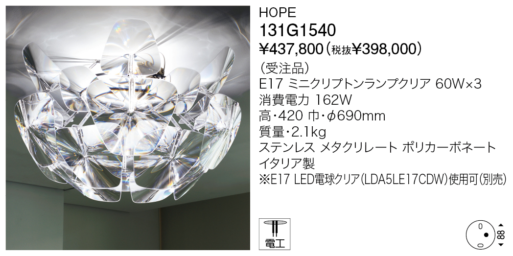 - ※E17 LED電球クリア(LDA5LE17CDW)使用可(別売)