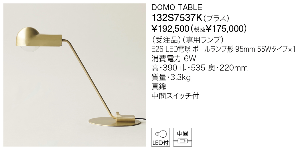 ドーモは、ジョエ・コロンボにより1965年にデザインされたテーブルランプです。ジョエ・コロンボは、新しい素材と最新技術を積極的に取り入れて未来的な「暮らしの中のマシン」をデザインし、新しいライフスタイルを象徴する製品を数多く生みだしました。そのうちの一つがこのドーモ。四角い形と直線をできるだけ避け、曲線的なフォルムを好んだジョエ・コロンボらしいスタイルです。