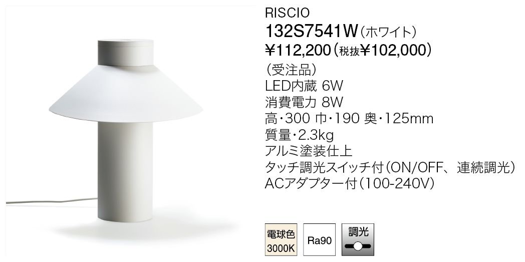 イタリア語で人力車の意味を持つリーショは、イタリアのデザイナー、ジョエ・コロンボがアジアの文化にインスパイアされ、1968年にデザインしたテーブルランプです。マットで滑らかに塗装された三角形のセードがボディから浮遊しているかのように見えます。LED光源とボディ上部のタッチ調光スイッチにより現代でも使いやすいかたちで復刻し、時代を超えてあらゆる空間を照らし続けています。