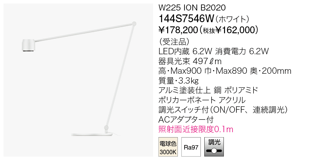 イオンは、支柱とヘッドのみで構成されたミニマルなタスクライト。コンパクトなヘッド部分には広配光かつ高演色の光源が搭載されています。360°シームレスに角度調整が可能で壁や天井へ向け間接光としても使えます。