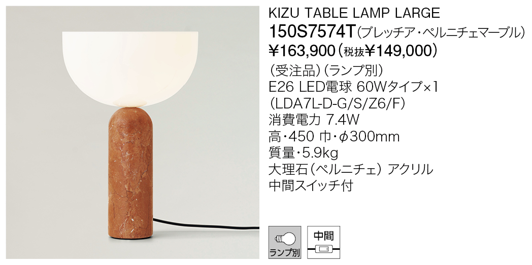 キズは、彫刻的なフォルムと上質な素材が調和したテーブルランプです。丸みを帯びた大理石のベースは、天然石ならではの独自の模様が一つひとつ異なる表情を生み出します。重厚感のあるベースの上に軽やかにバランスを取る半球型のシェードが、モダンで落ち着いた雰囲気を演出。リビングや寝室、エントランスなど、さまざまな空間にあわせて、サイズやカラーバリエーションも豊富に揃っています。