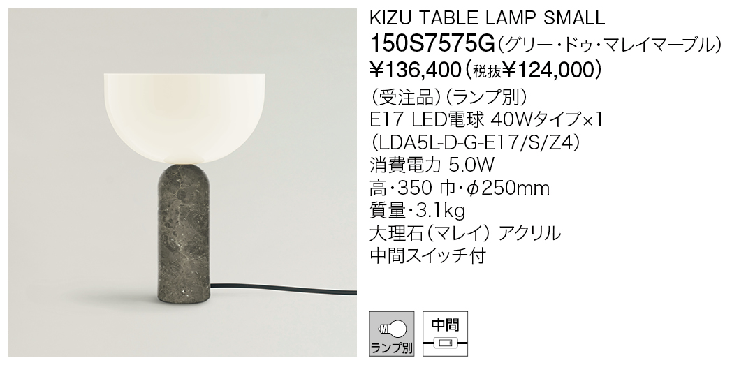 キズは、彫刻的なフォルムと上質な素材が調和したテーブルランプです。丸みを帯びた大理石のベースは、天然石ならではの独自の模様が一つひとつ異なる表情を生み出します。重厚感のあるベースの上に軽やかにバランスを取る半球型のシェードが、モダンで落ち着いた雰囲気を演出。リビングや寝室、エントランスなど、さまざまな空間にあわせて、サイズやカラーバリエーションも豊富に揃っています。