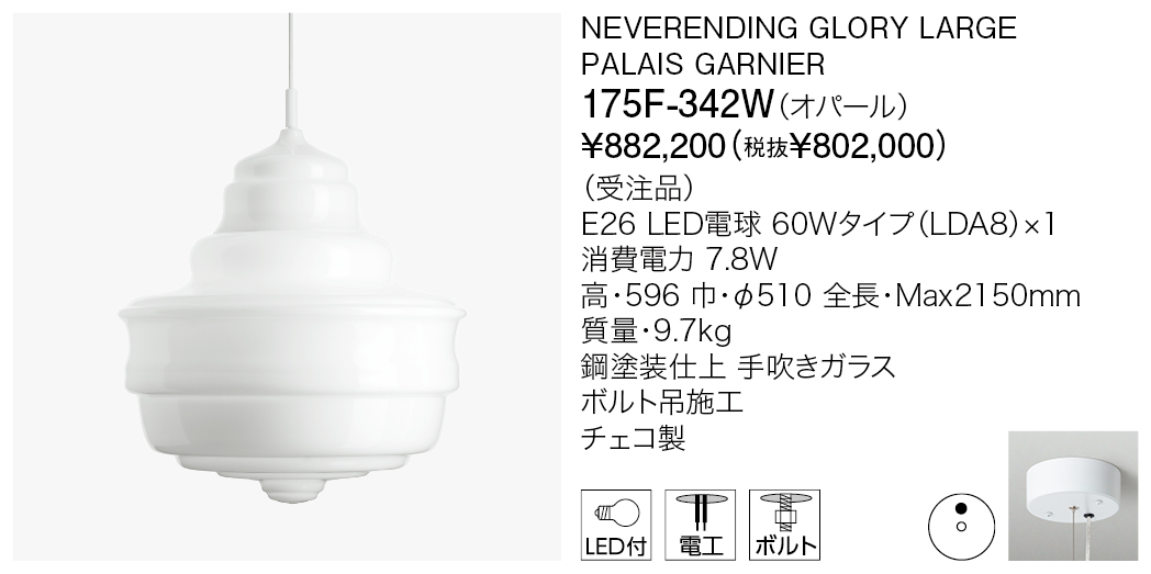 ネバーエンディンググローリーは、ノスタルジックな感情を反映するとともに、豪華な蝋燭のシャンデリアを新たな見方で解釈した作品です。そのフォルムは、世界で最も有名な5つのコンサートホールや劇場である、パリのガルニエ宮殿、ミラノのスカラ座、ニューヨークのメトロポリタン歌劇場、モスクワのボリショイ劇場、プラハのエステート劇場にあるシャンデリアのアウトラインを形どっています。