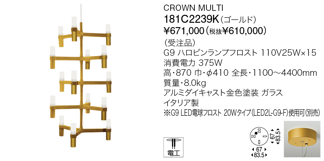 - ※G9 LED電球フロスト 20Wタイプ(LED2L-G9-F)使用可(別売)
