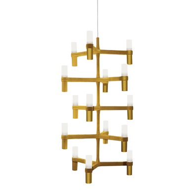 ドイツ出身のマルクス・イェスとユルゲン・ラウブによるデザインスタジオ、Jehs+Laubによるシャンデリア。古き良きキャンドル・シャンデリアの現代的な解釈により、新たなモダンデザインを提案しています。30灯のMAJORは空間の印象を変えるほどの存在感。5つのカラー展開の中から、お好みの質感とカラーを選ぶことができます。