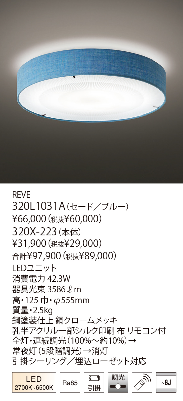 レーヴは、デンマークを代表するテキスタイルブランド クヴァドラ社のRemixを採用したシンプルで上品なシーリングライト。テキスタイルを透過する側面からのやわらかな光と、下面アクリルを通す均一で明るい光が室内を豊かに満たします。