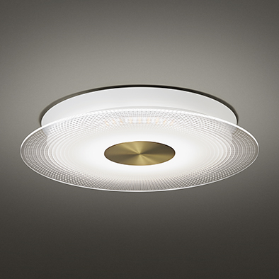 リファインは、その名前の通り洗練されたデザインのシーリングライト。アクリルディフューザーには中心から円周に向い密度を変えた幾何学模様を印刷。輝度(眩しさ)を抑えつつ十分な光が広がるよう設計しています。ディフューザーのエッジは光を受け輝き、豊かな光の表現がモダンな空間を演出します。