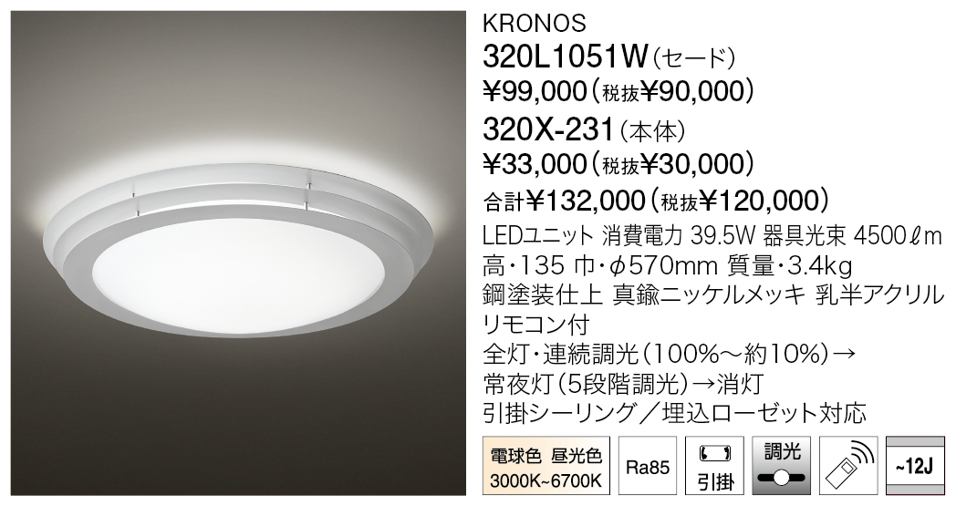 クロノスは、あかりを灯すと層になった金属製の環が光りを受け美しいグラデーションが浮かび上がる、彫刻的な造形のシーリングライトです。ドーム状のアクリルセードからのやわらなか光りと、環に反射する複雑な光が混和し空間を優しく包みます。