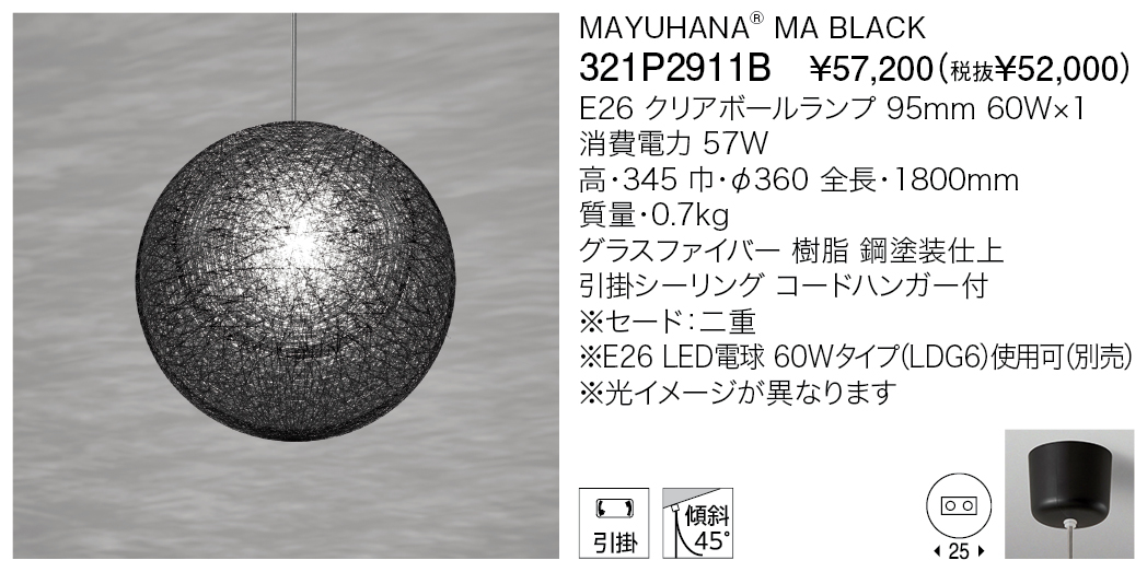 - ※コードハンガー使用時のみ、45度までの傾斜天井に取付け可能です