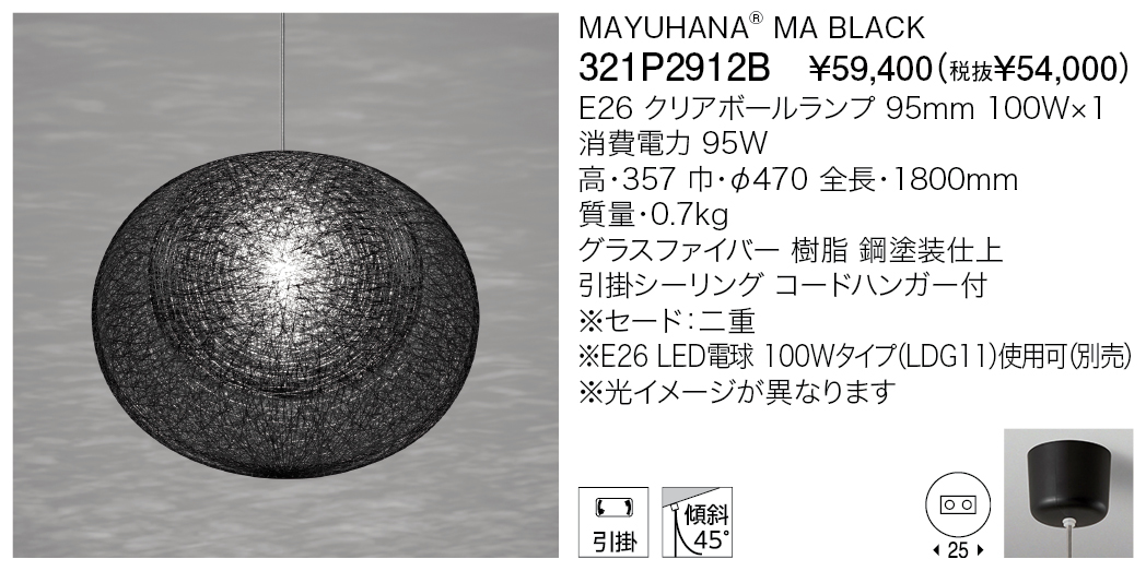 - ※コードハンガー使用時のみ、45度までの傾斜天井に取付け可能です
