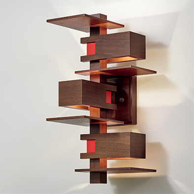 タリアセン・ウォールスコンスは、1933年、ヒルサイド・ホーム・スクールの体育館を劇場に改装した際に設計したペンダント照明を基にデザイン。ランプを覆ういくつものブロックで制御された上下方向の光はさらに遮光板に反射し、間接光の心地よい明るさが得られます。