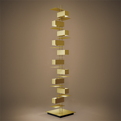 ライト建築の有機的で重厚な空間から繊細で軽やかな空間へ、時代とともに変化する建築に合わせタリアセンを現代的に読み替えた。オリジナルの要素はそのままに面の構成から線の構成へ、木から金属へ。素材を薄く細く突き詰めることで構造物としての存在は消え、さらに遮光板のスチール表面に風景が映り込む事で空間に溶け込み、光のみが浮かび上がる。ニュースタンダードとして様々な空間に置かれることを願っている。- 永山 祐子